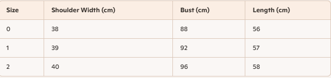 - Size : 0,1,2