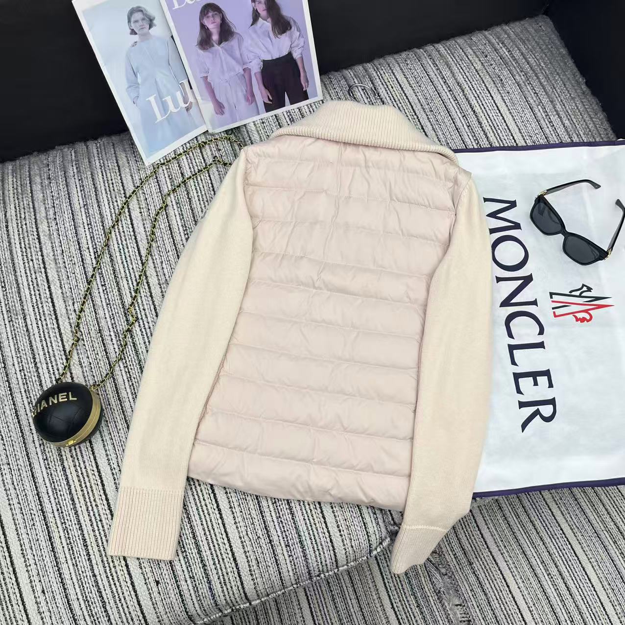 MC 2025 Quilted Knit-panel Puffer Jacket Nude Pink Polyester Wool 528746