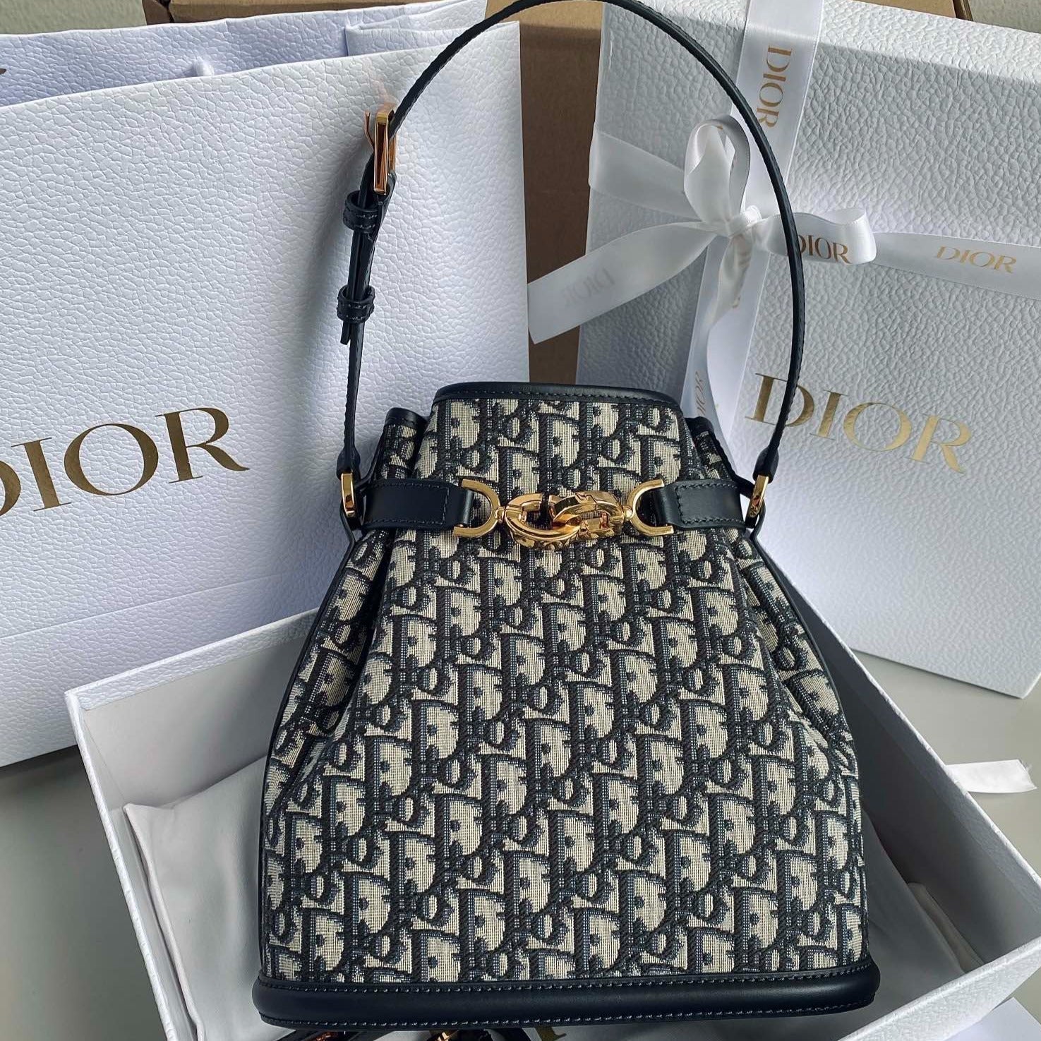 MEDIUM C'EST 24 IN BLUE CD-EMBOSSED OBLIQUE JACQUARD