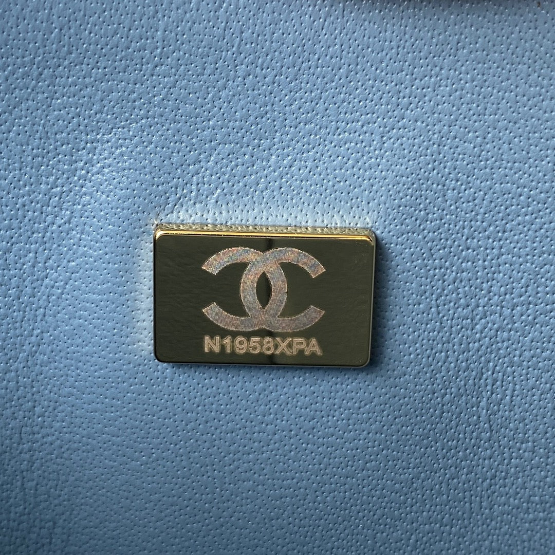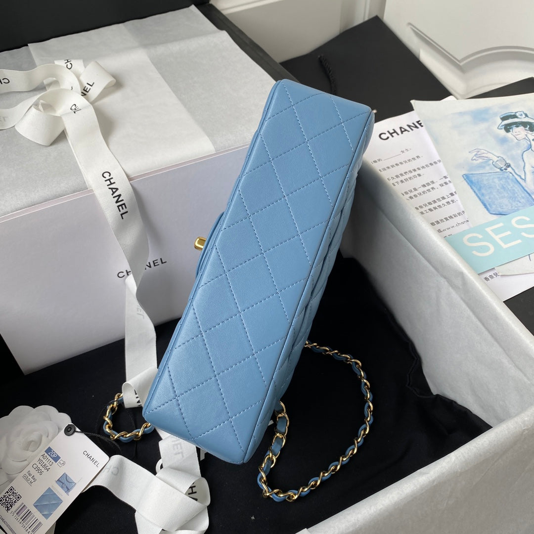 Medium Classic Flap Bag 23cm Blue Lambskin Gold Hardware