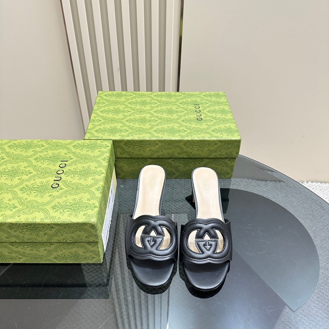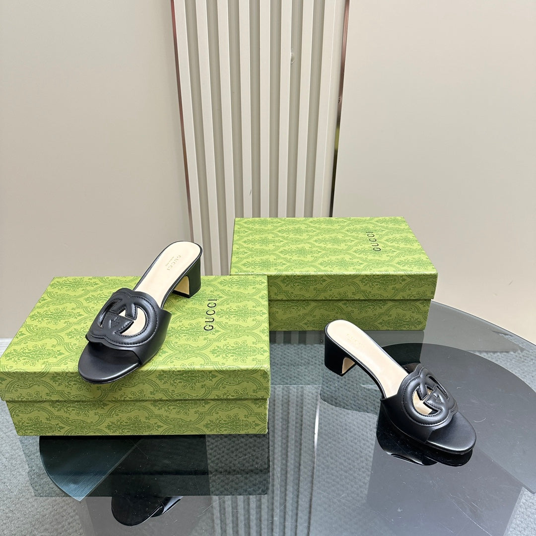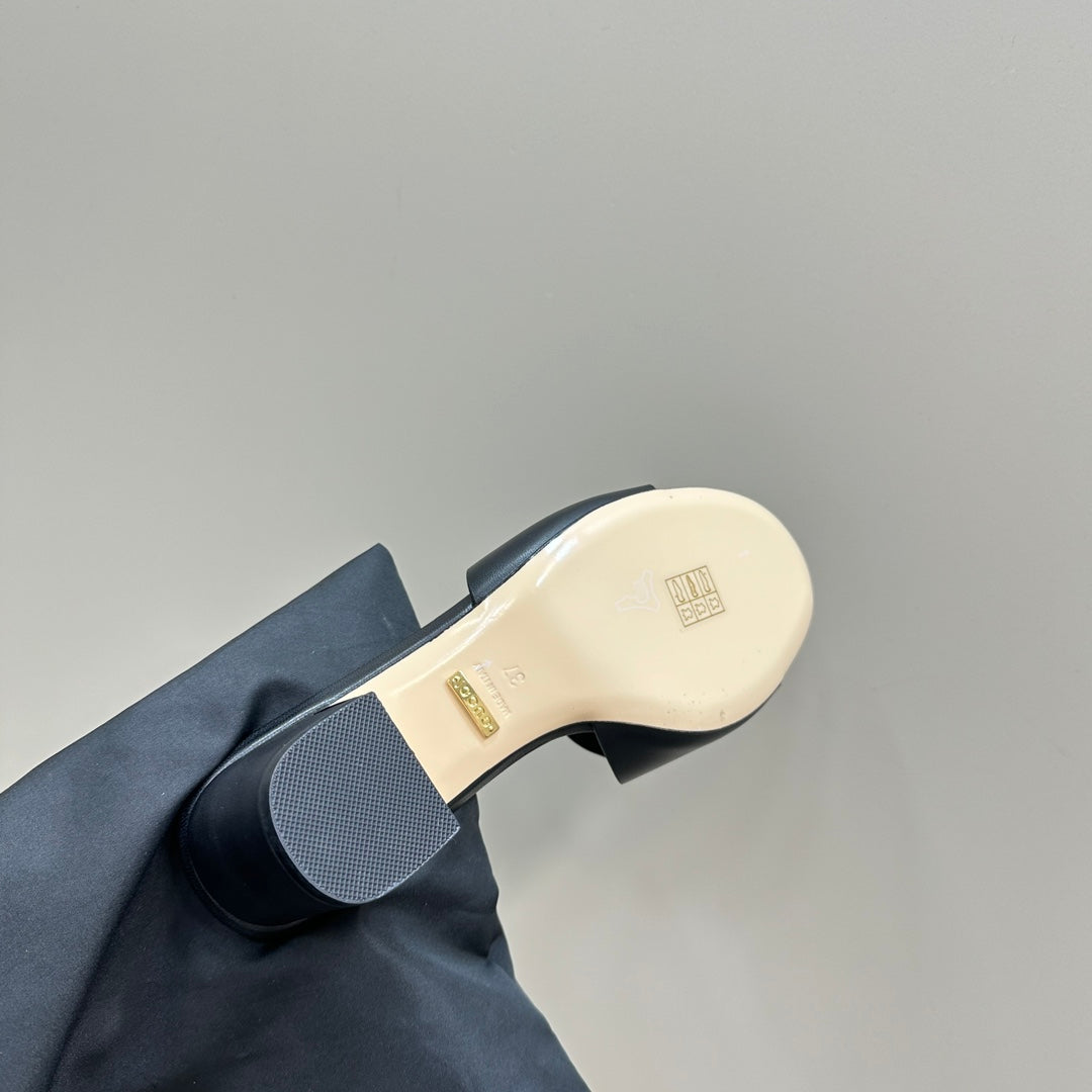 MID-HEEL 5 CM MULE IN BLACK CALFSKIN