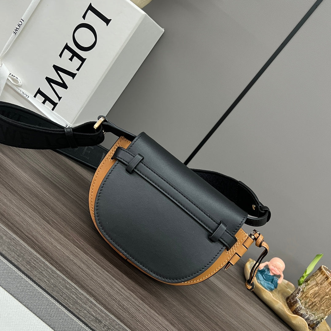Mini Gate Dual bag in soft calfskin and jacquard Black and Tan smooth caflskin
