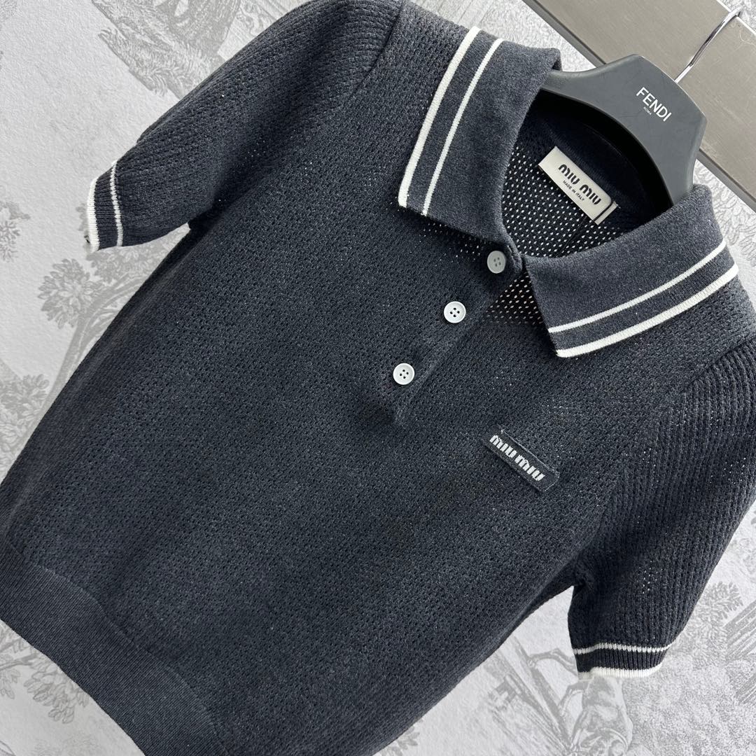 Miu 25 Polo Shirt Black Wool 233471