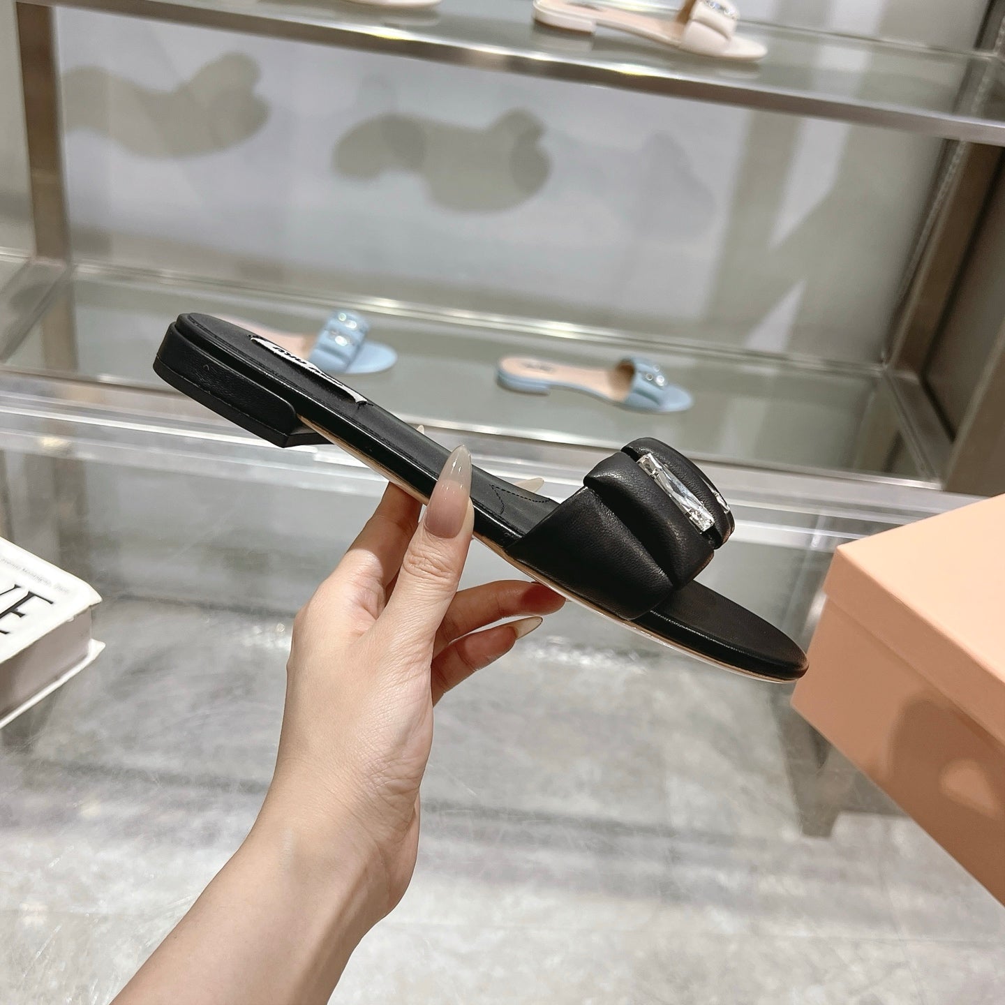 Miu 25C Slippers Black Leather 235286