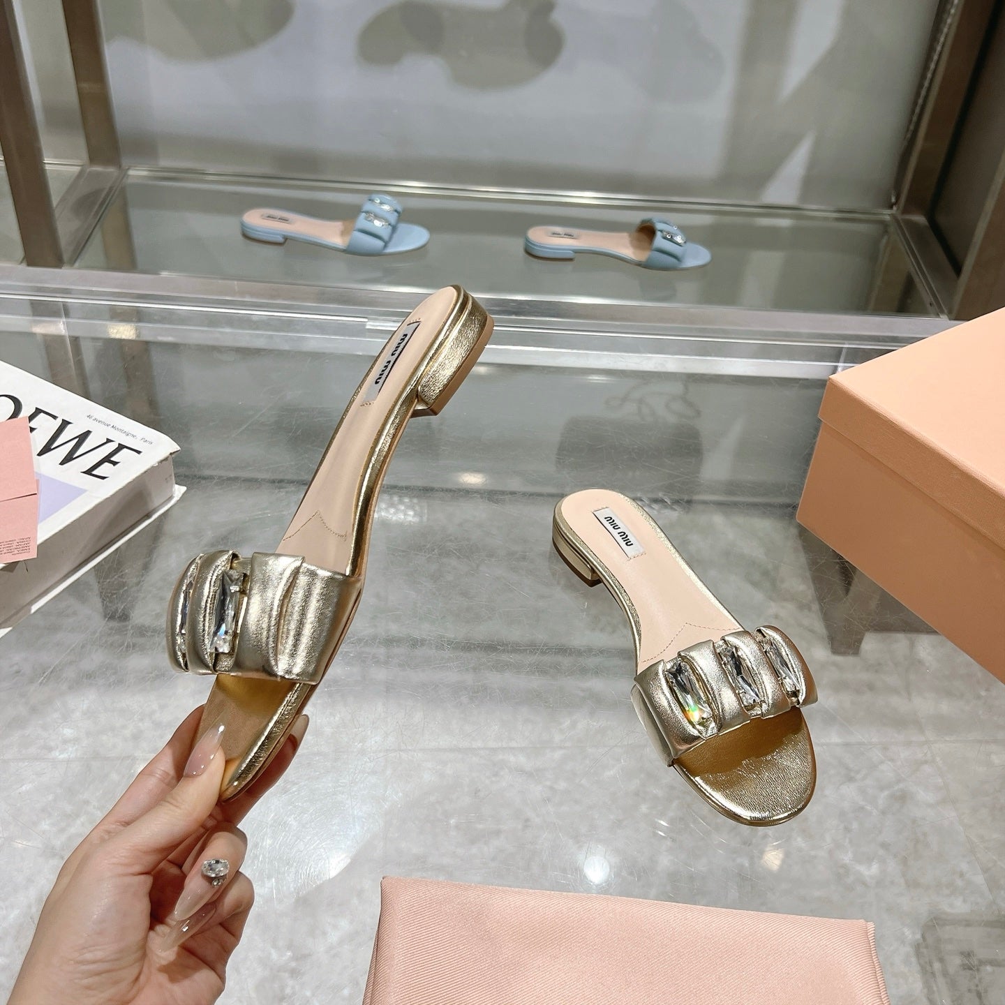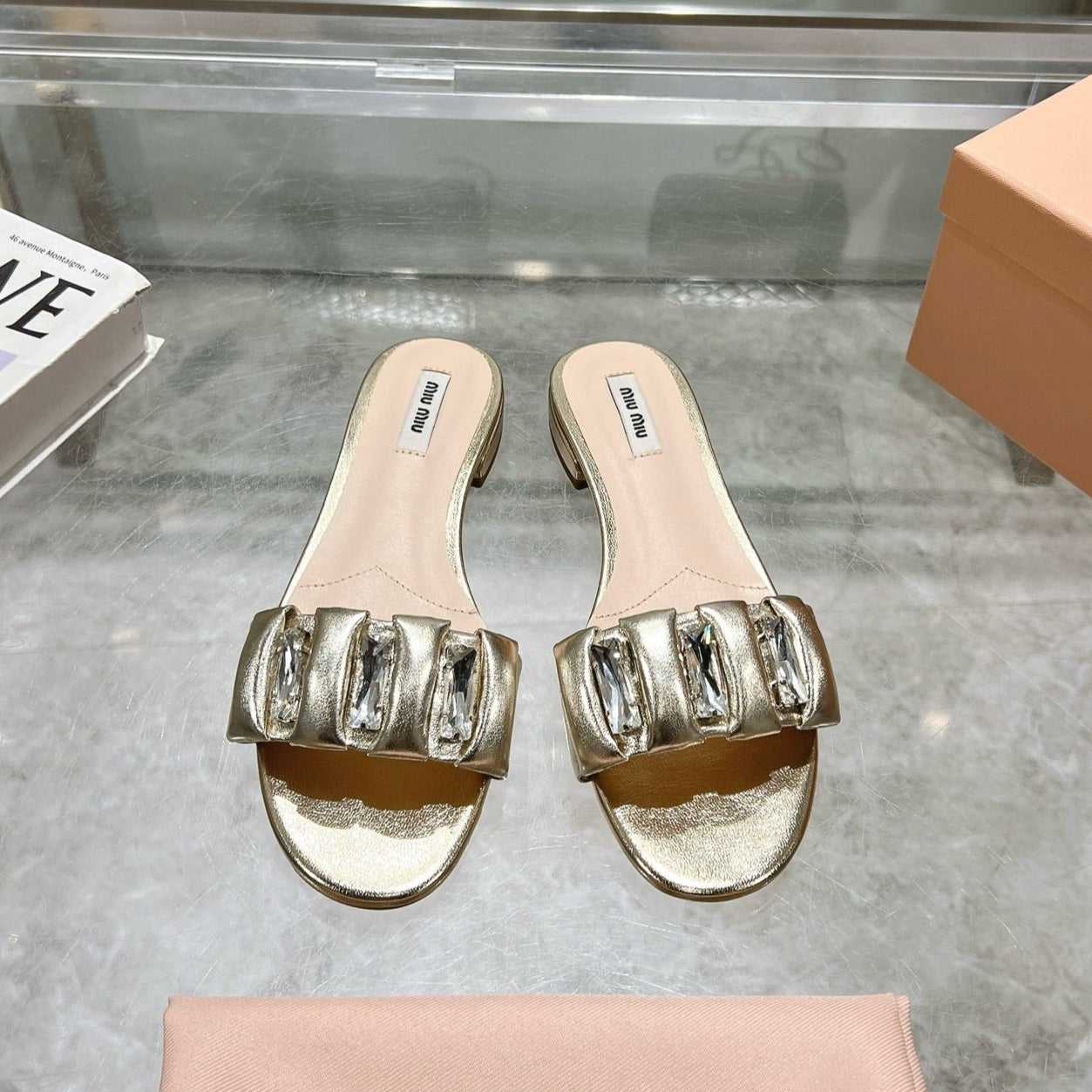 Miu 25C Slippers Gold Leather 235285