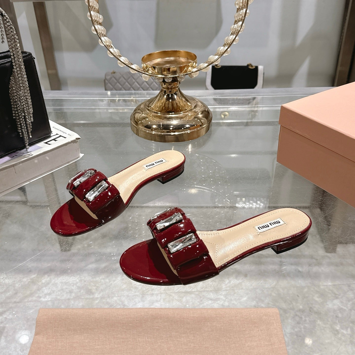 Miu 25C Slippers Red Patent Leather 235323