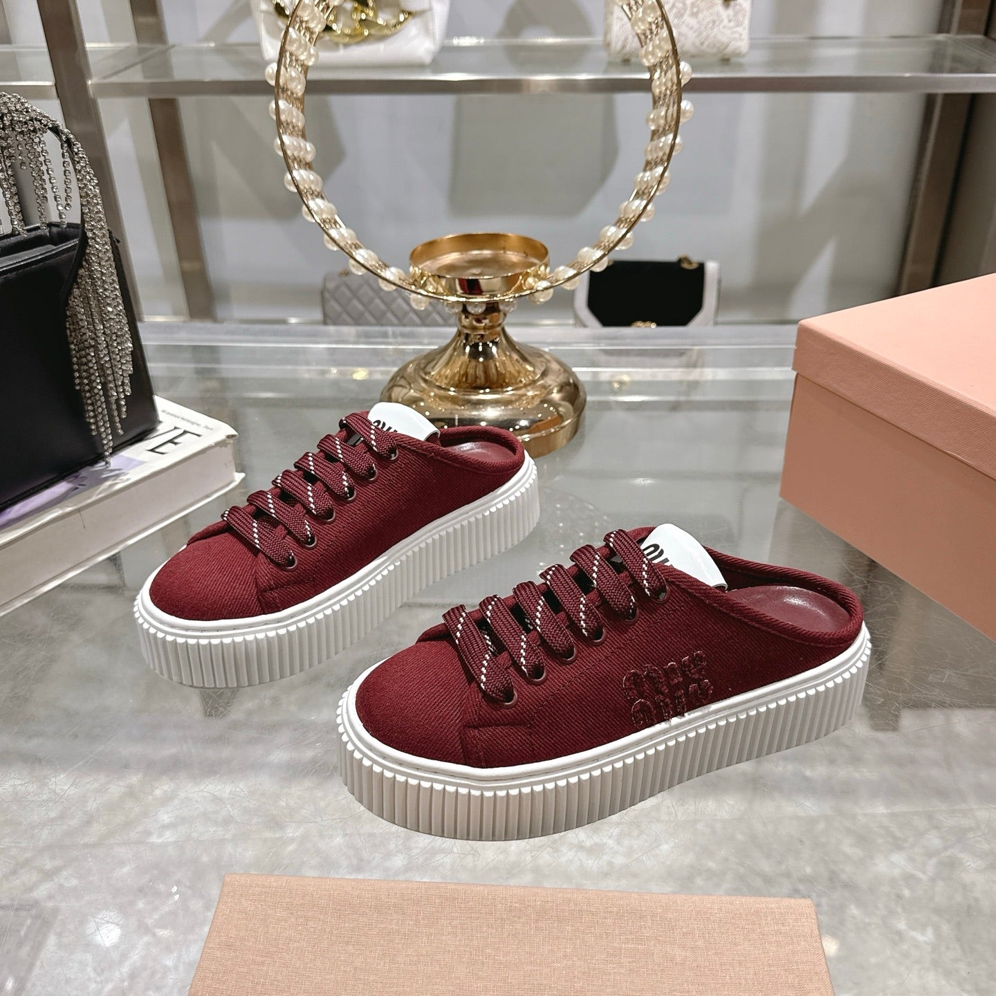 Miu 25C Sneaker Mules Maroon Red Demin Fabric 235318