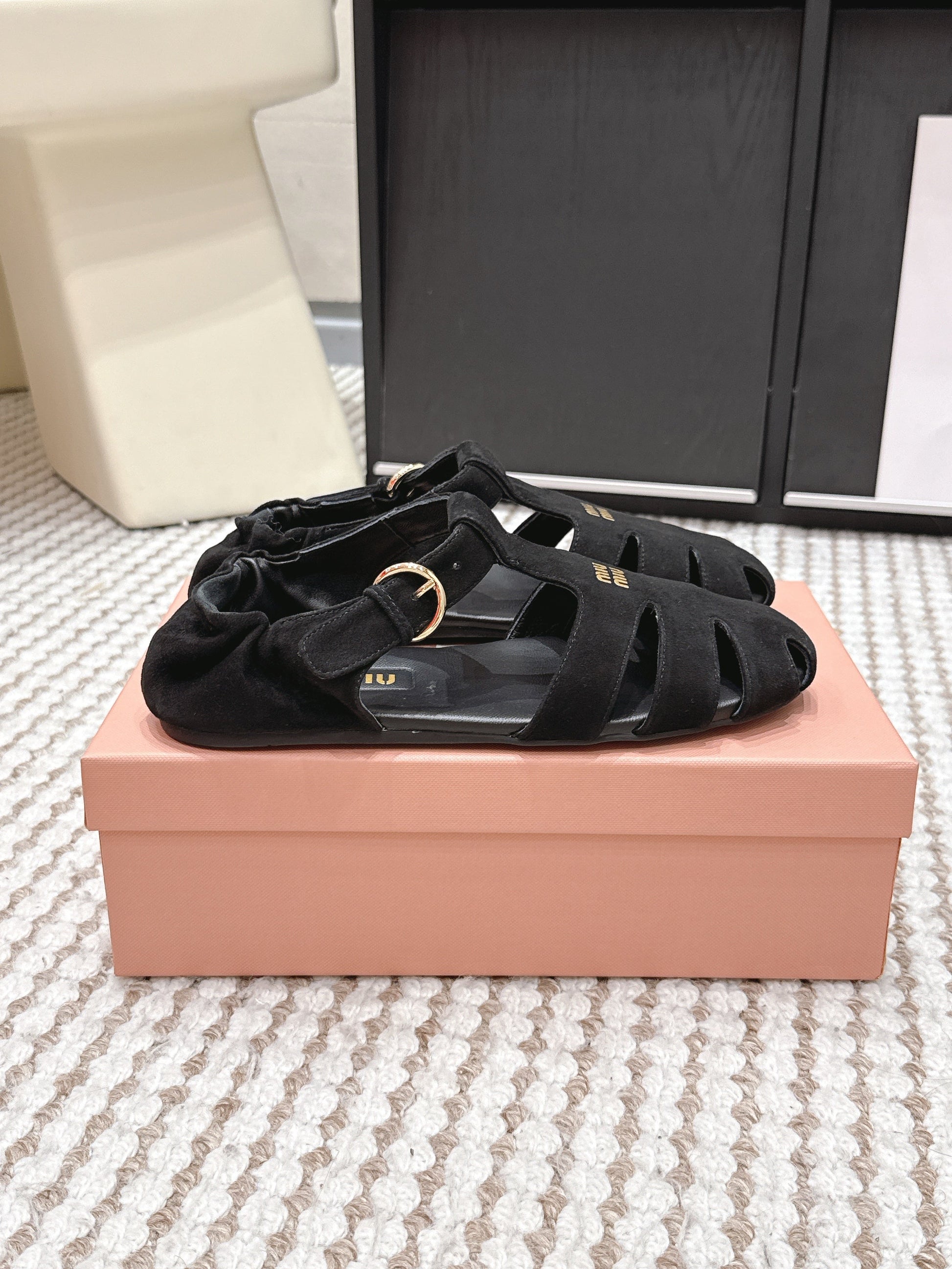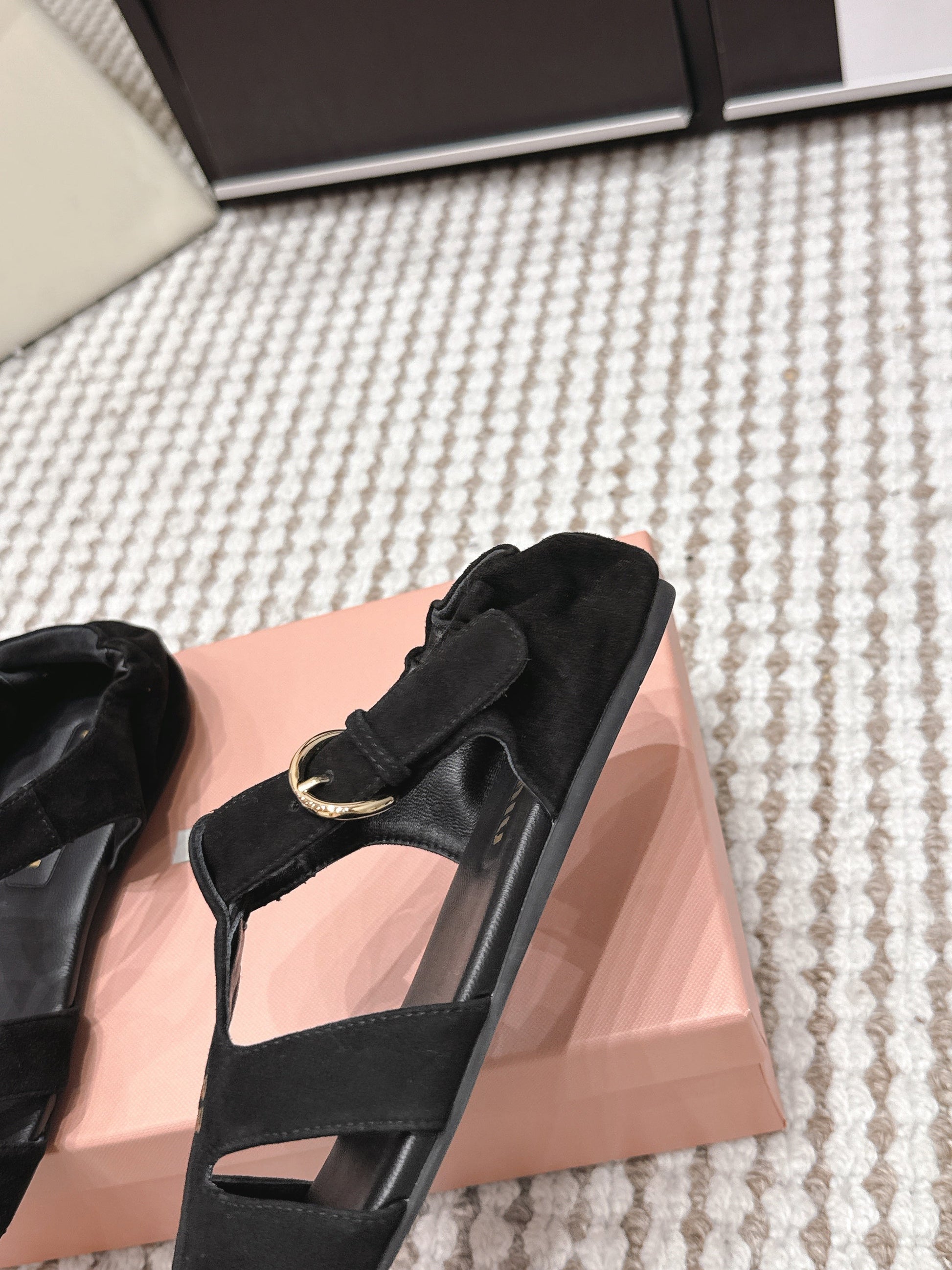 MIU 26 Roman Sandals Black Suede 632328