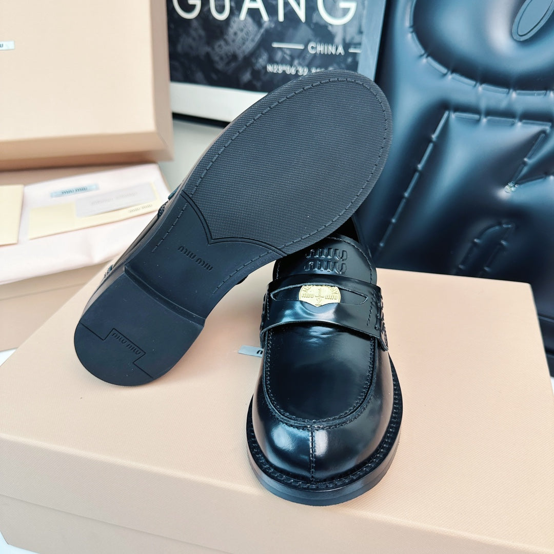 Miu Loafers Glossy Black Calfskin
