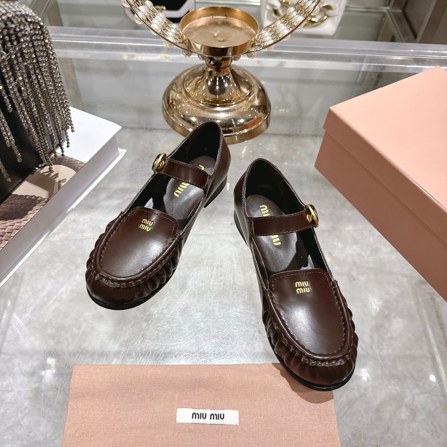 Miu Mary Jane Ballet Flats Brown Calfskin 592044
