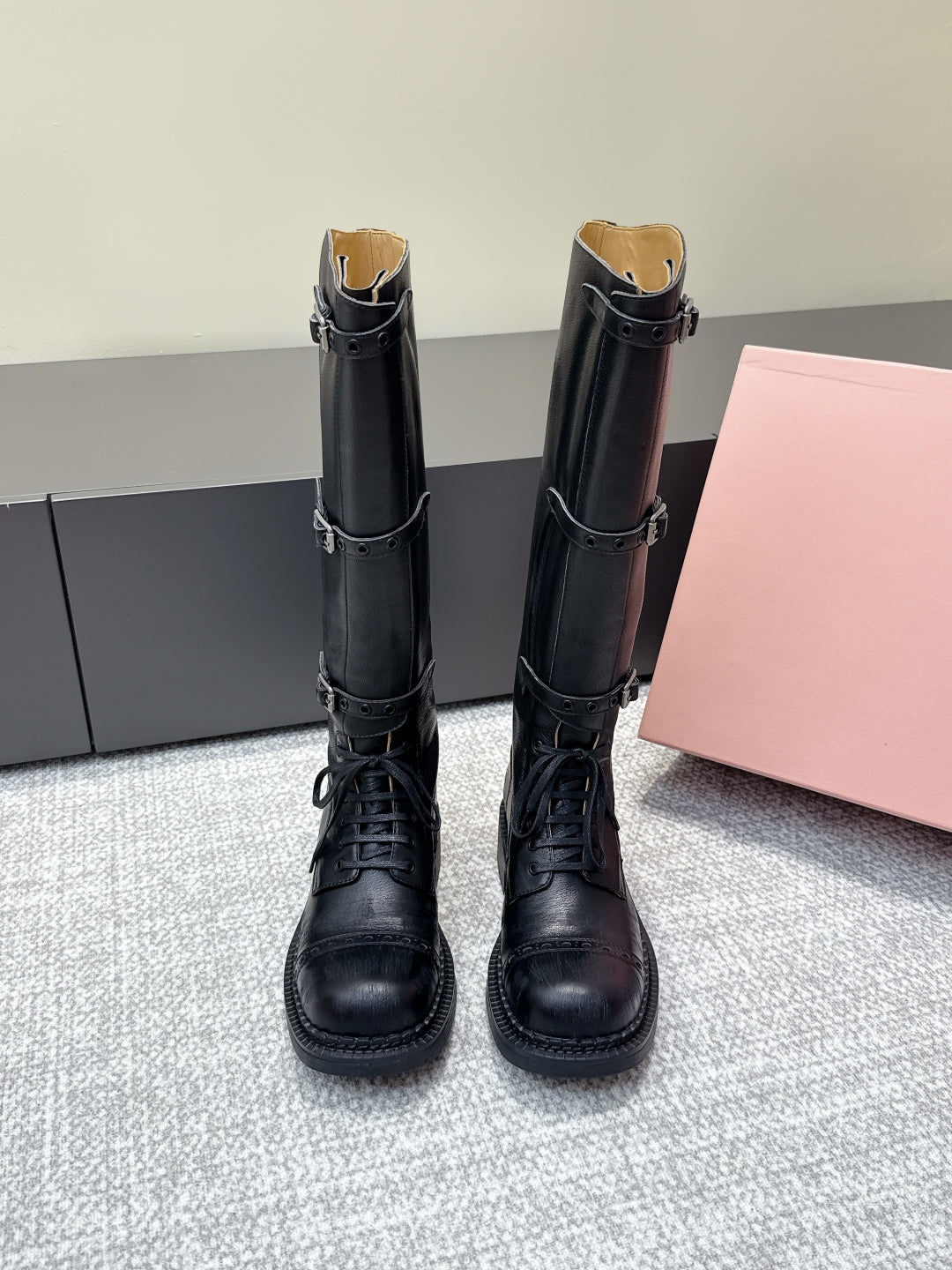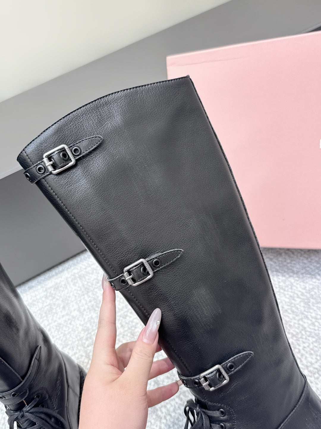 MIU MIU Cowboy High Boots Black Sheepskin 461845