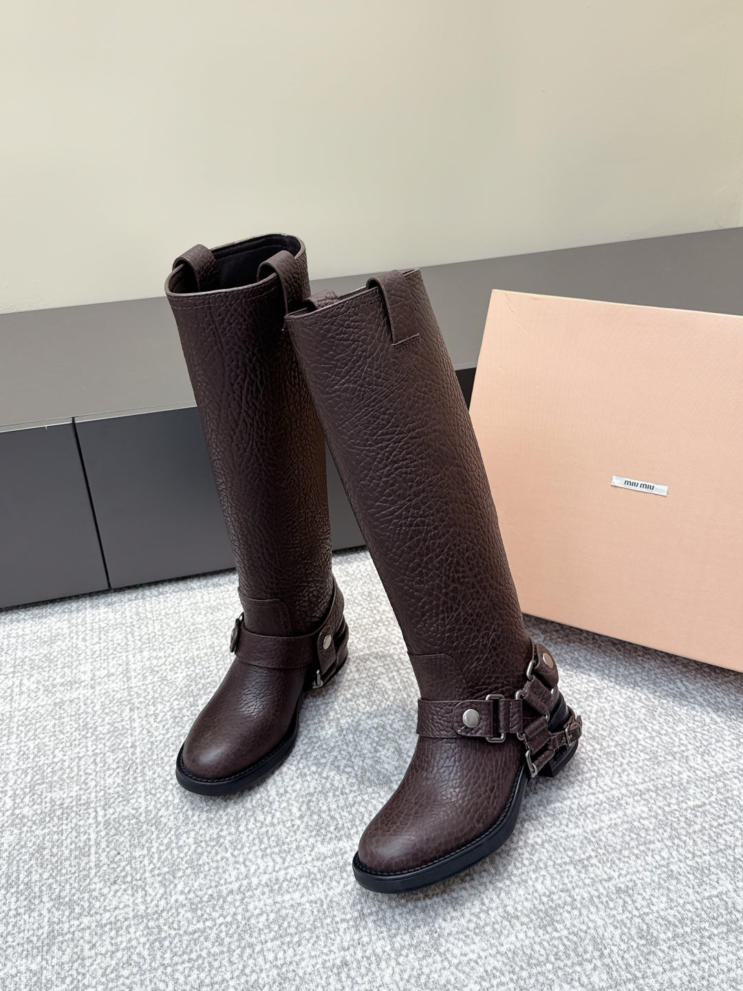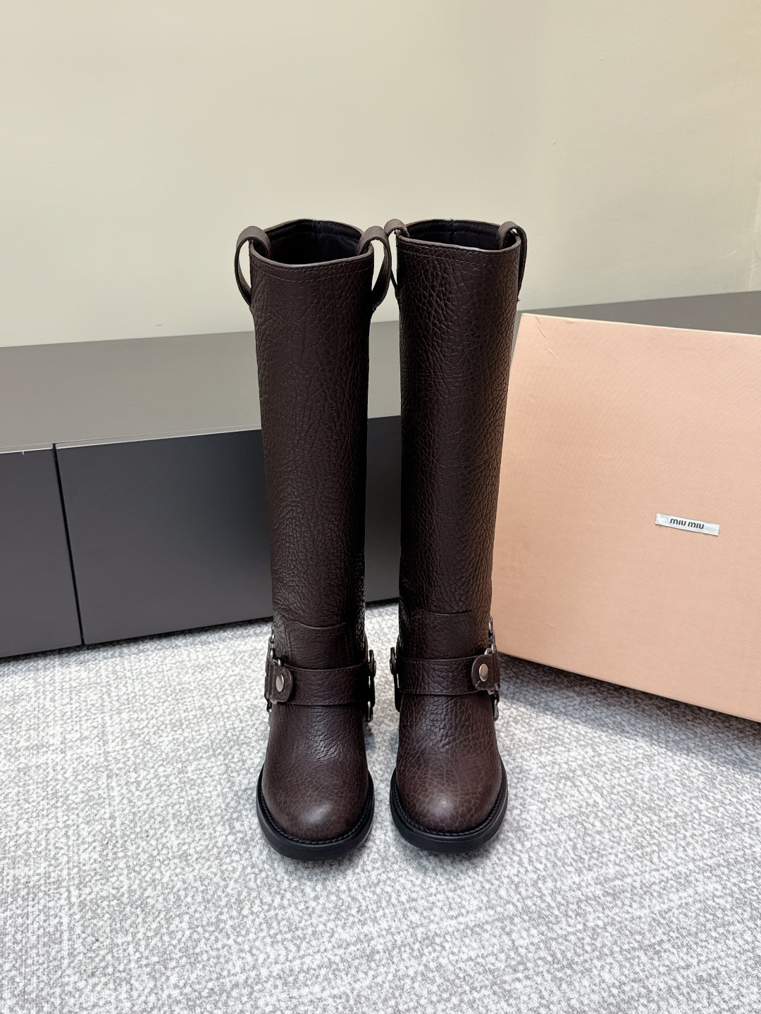 MIU MIU high boots dark brown sheepskin 461851