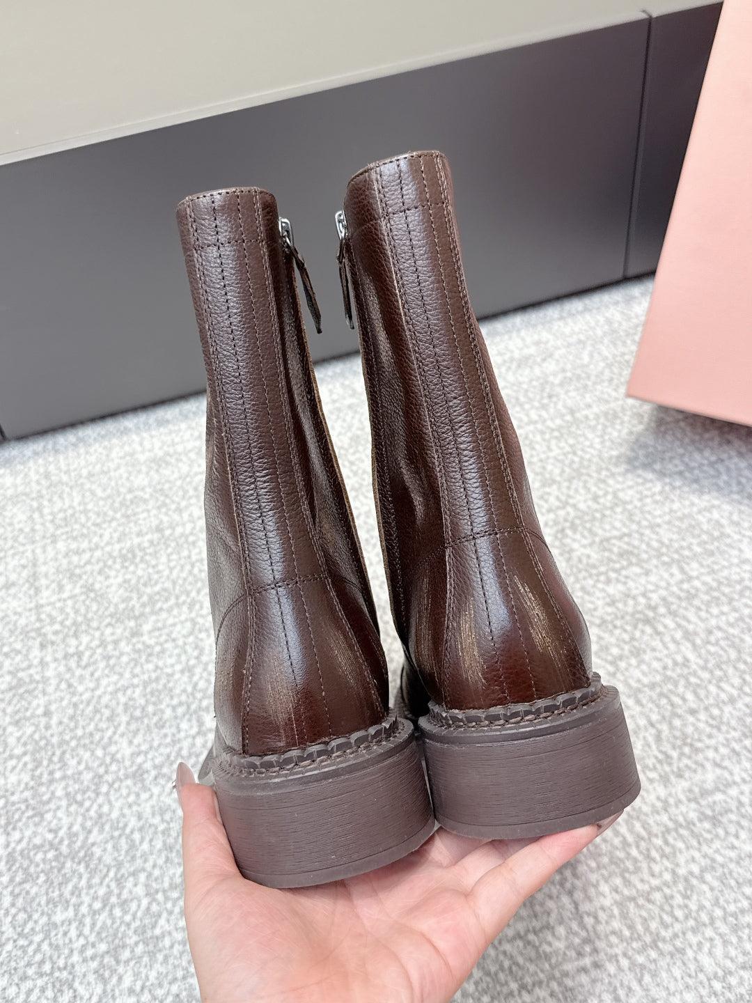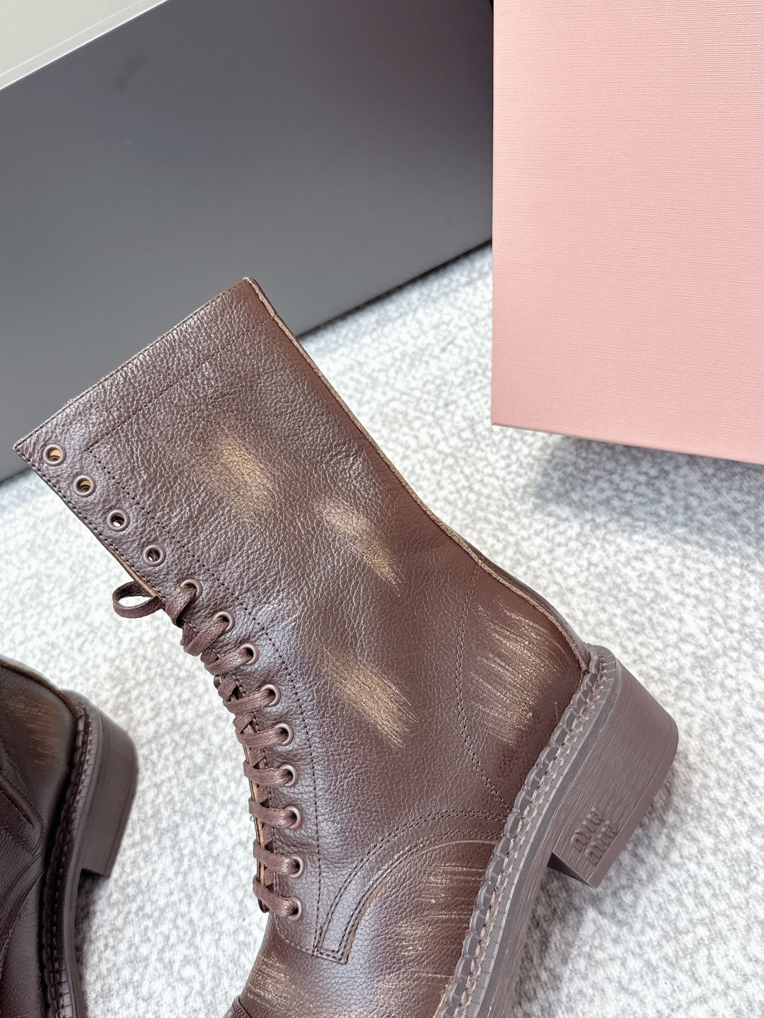 MIU MIU Martin boots dark brown sheepskin 461843