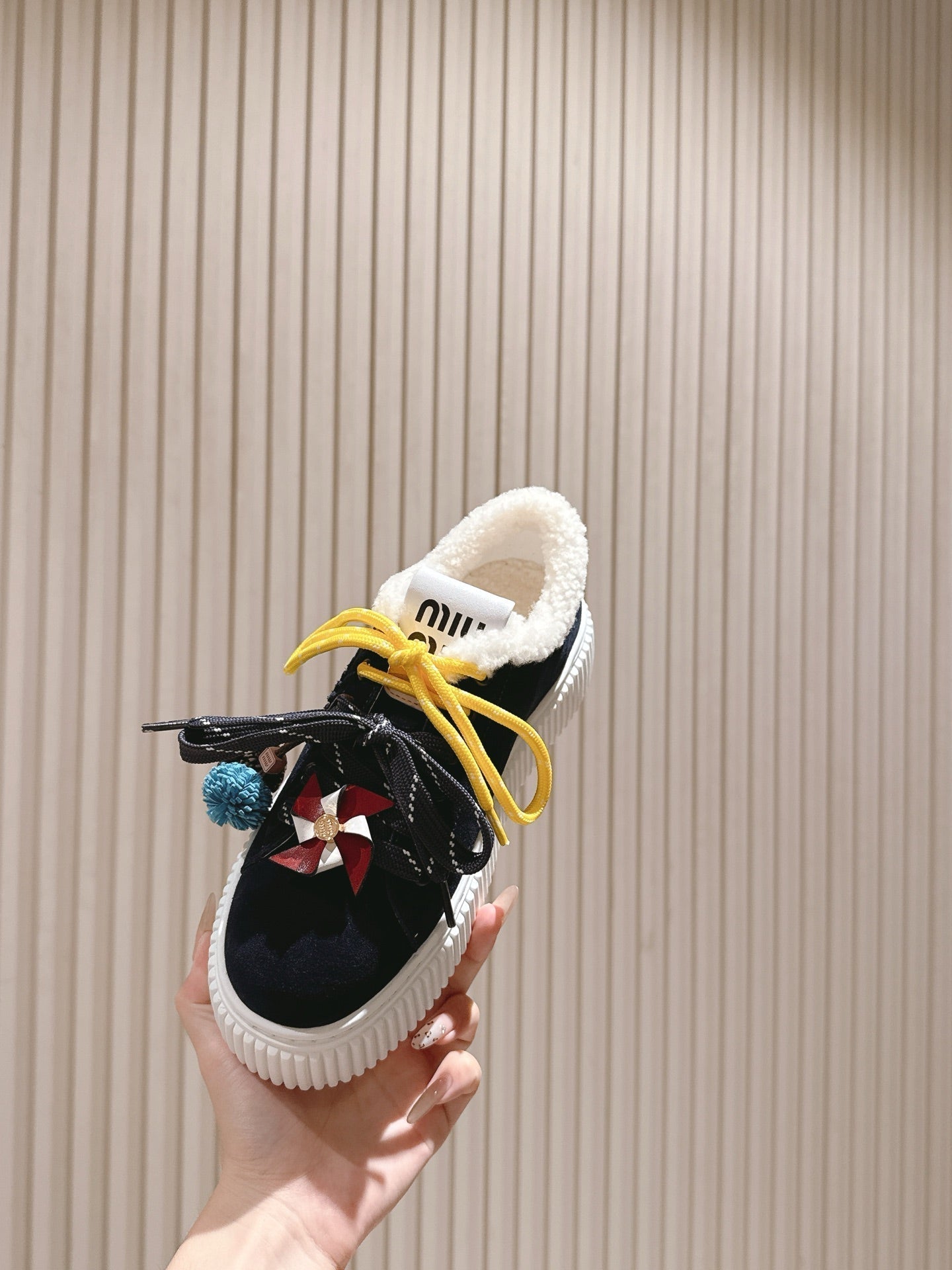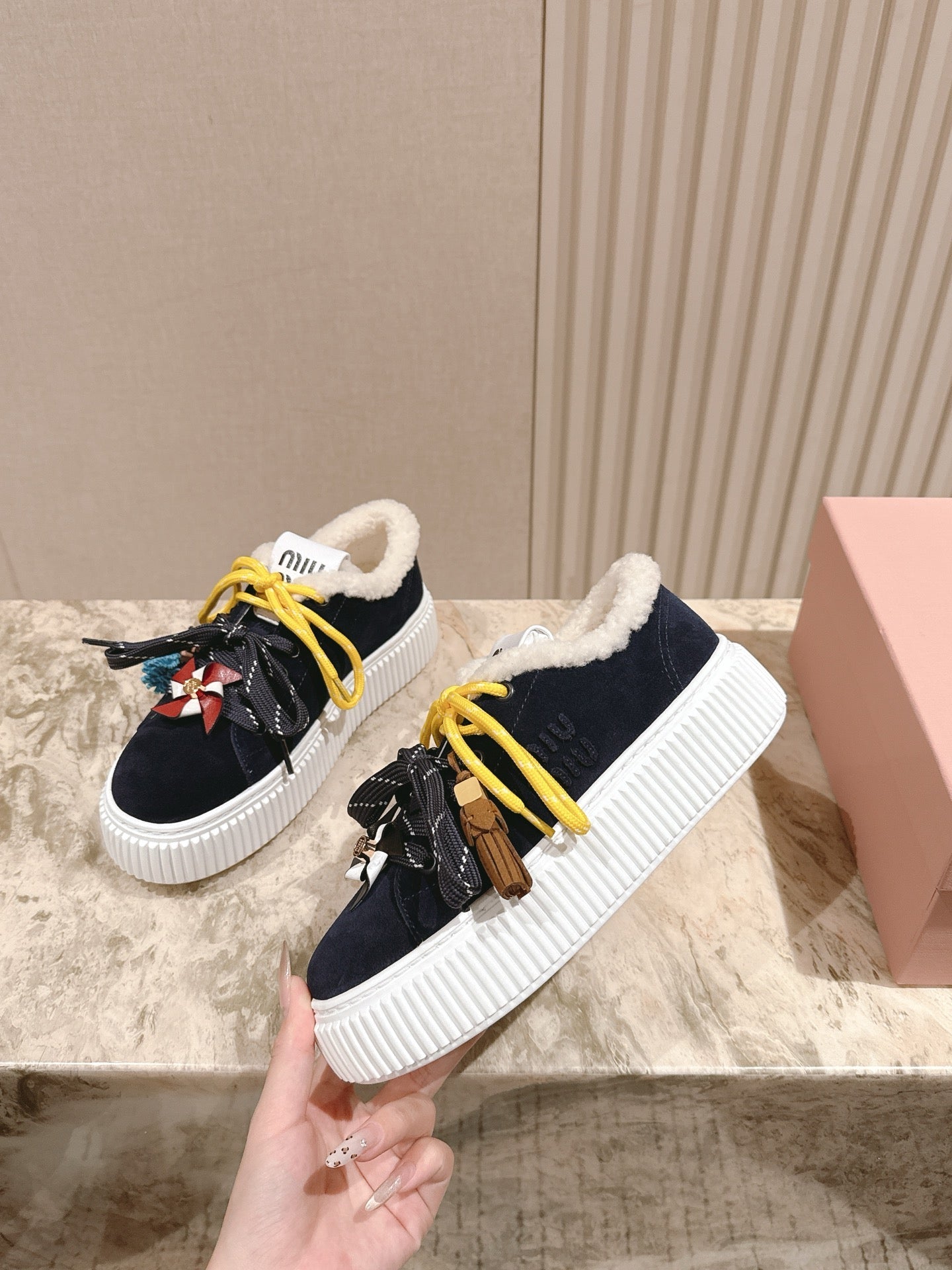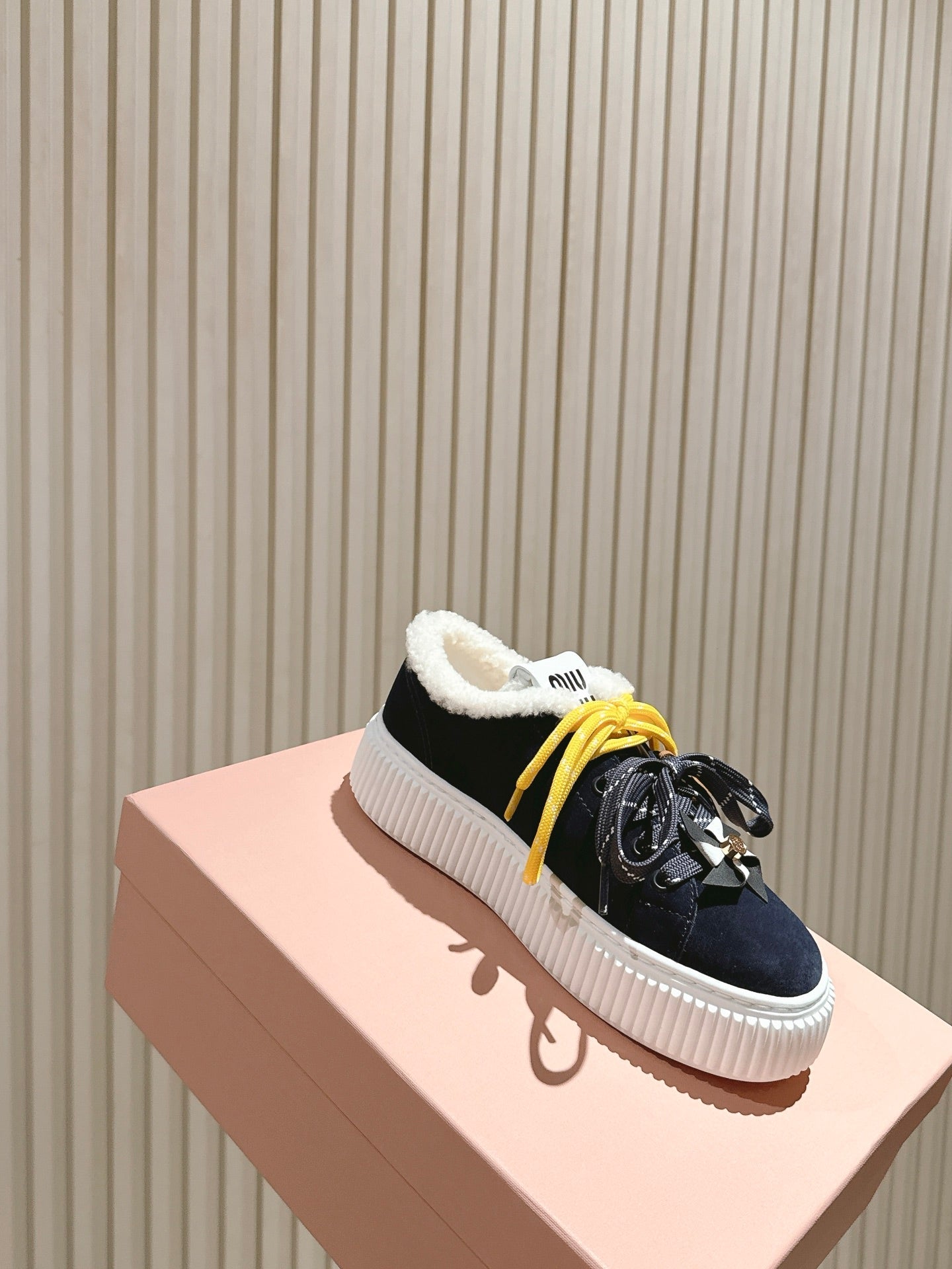 MIU MIU platform sneakers black suede wool 461863
