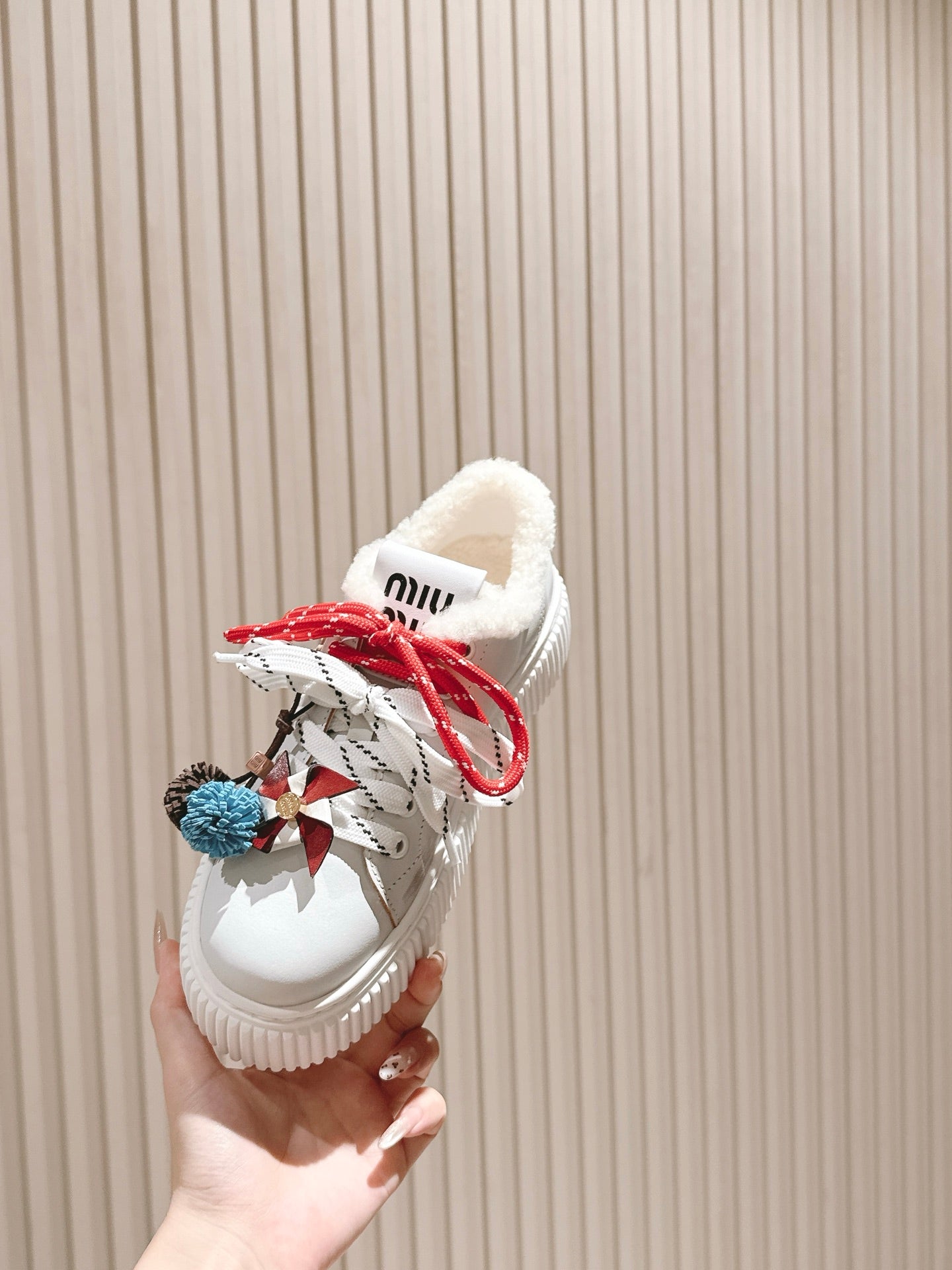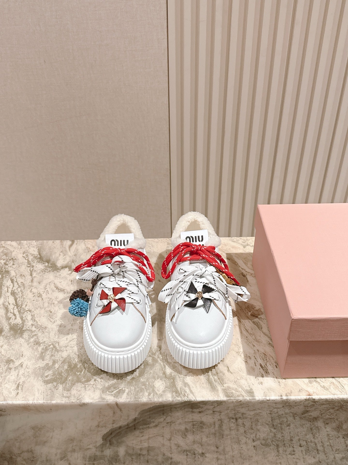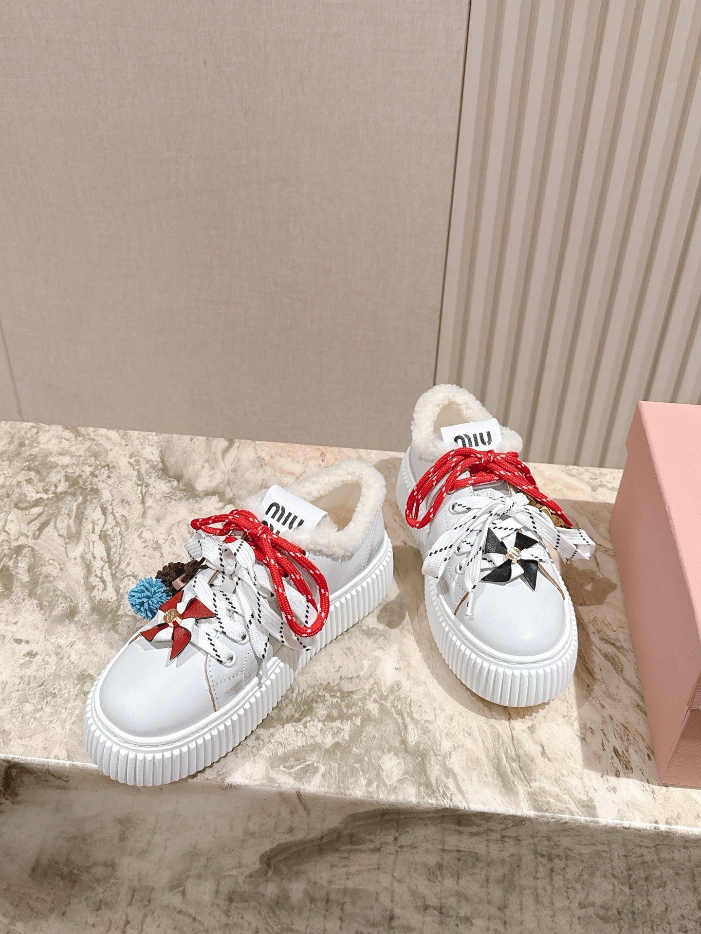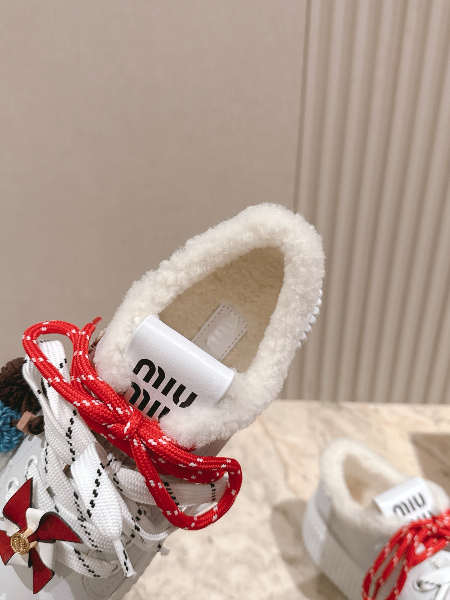 MIU MIU platform sneakers white leather wool 461859