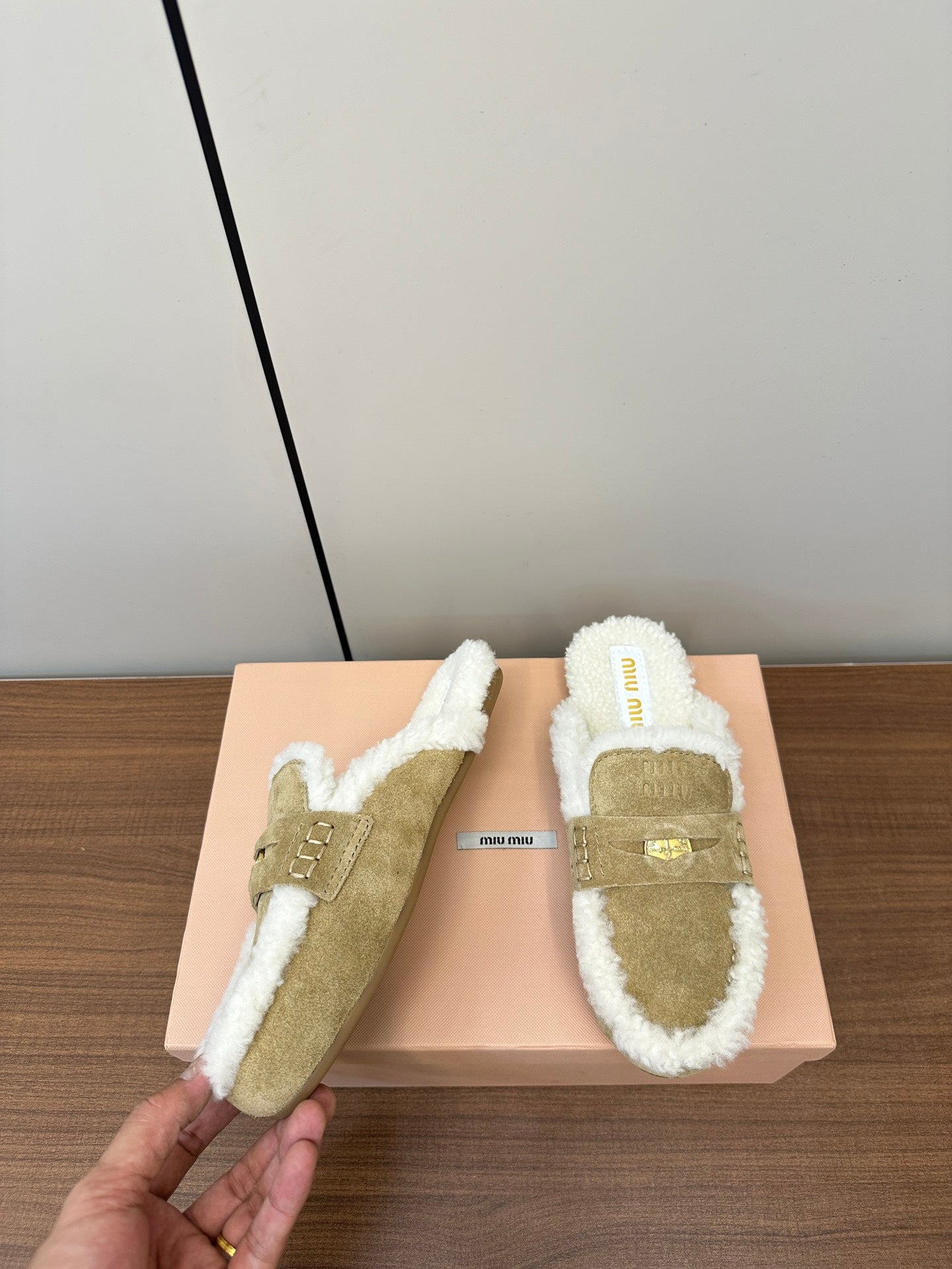 Miu Mule Half Fur Light Brown Suede