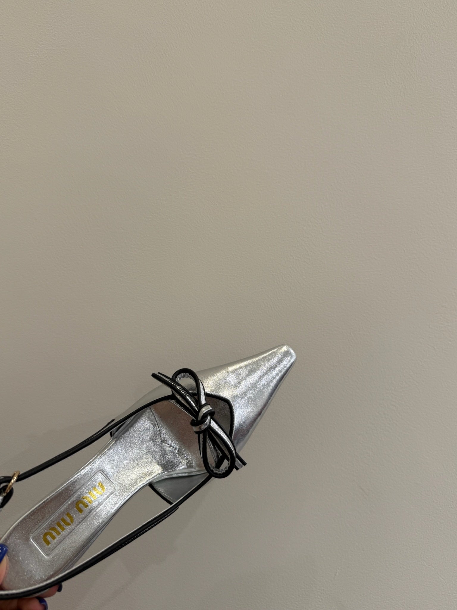 Miu slingback pump metallic sliver leather