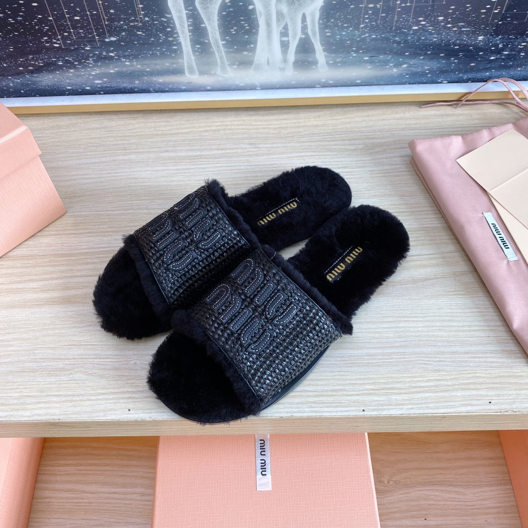 Miu Slipper Black Woven Raffia