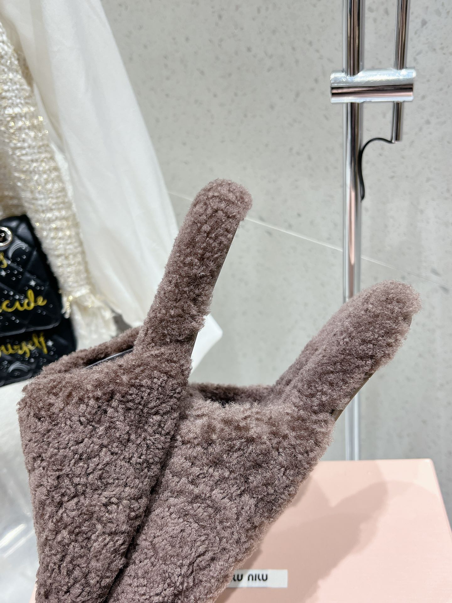 Miu Slippers Brown Earth Wool Fabric