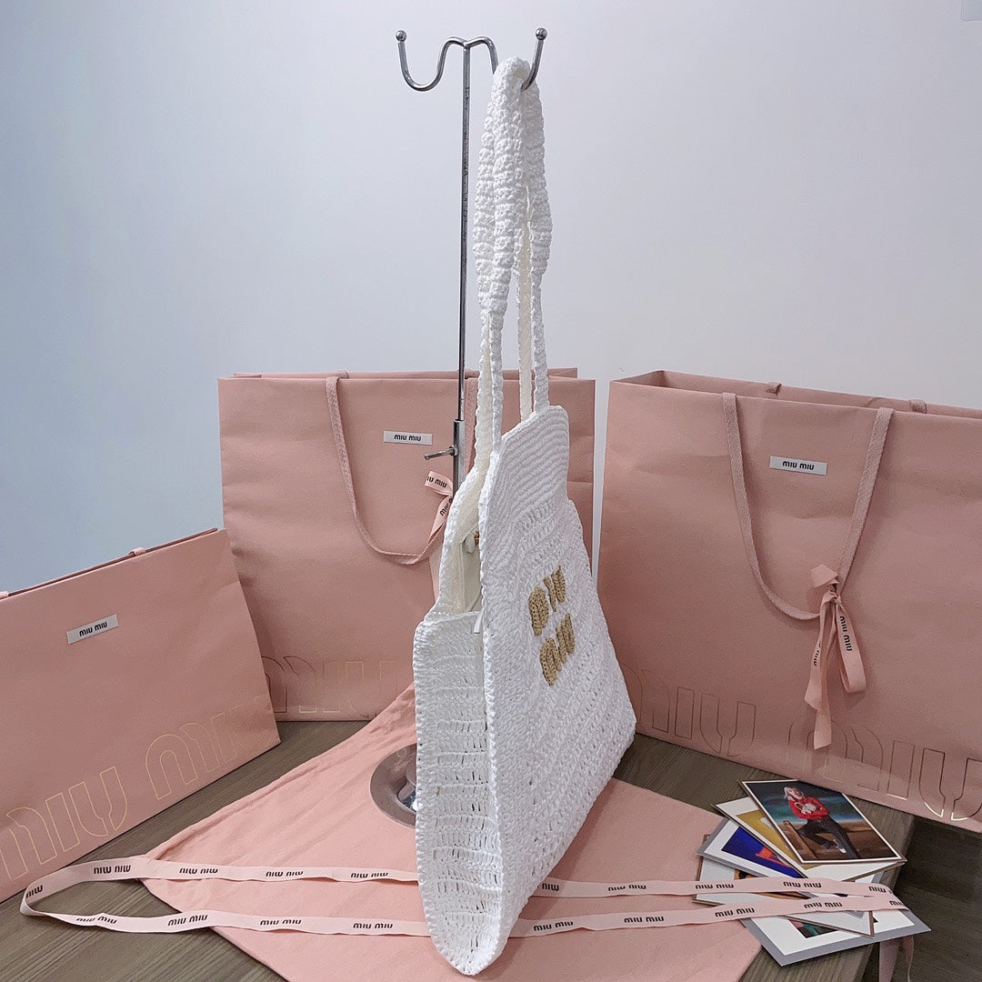 miu tote bag 38cm white woven fabric