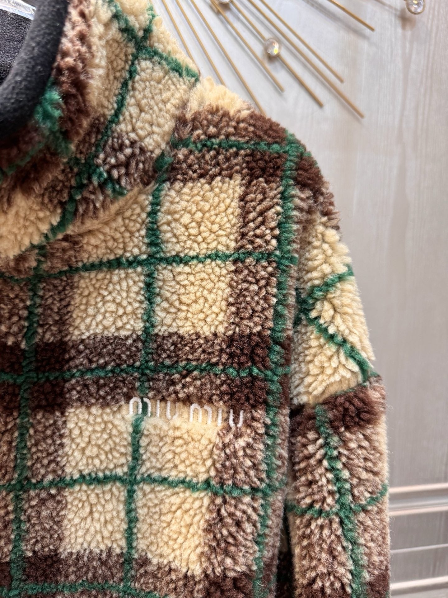 Miumiu 2025 Teddy Fleece Short Jacket Beige Mix Color Wool Polyester