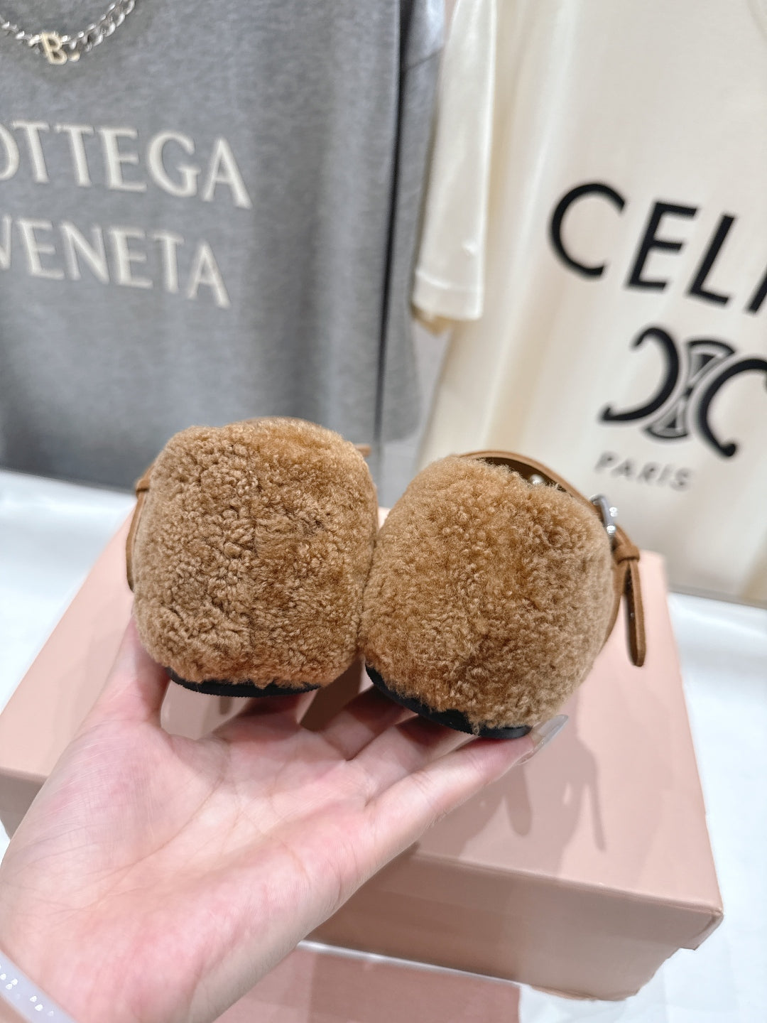 MiuMiu 25 Ballet Flat Brown Lambskin Wool 535593