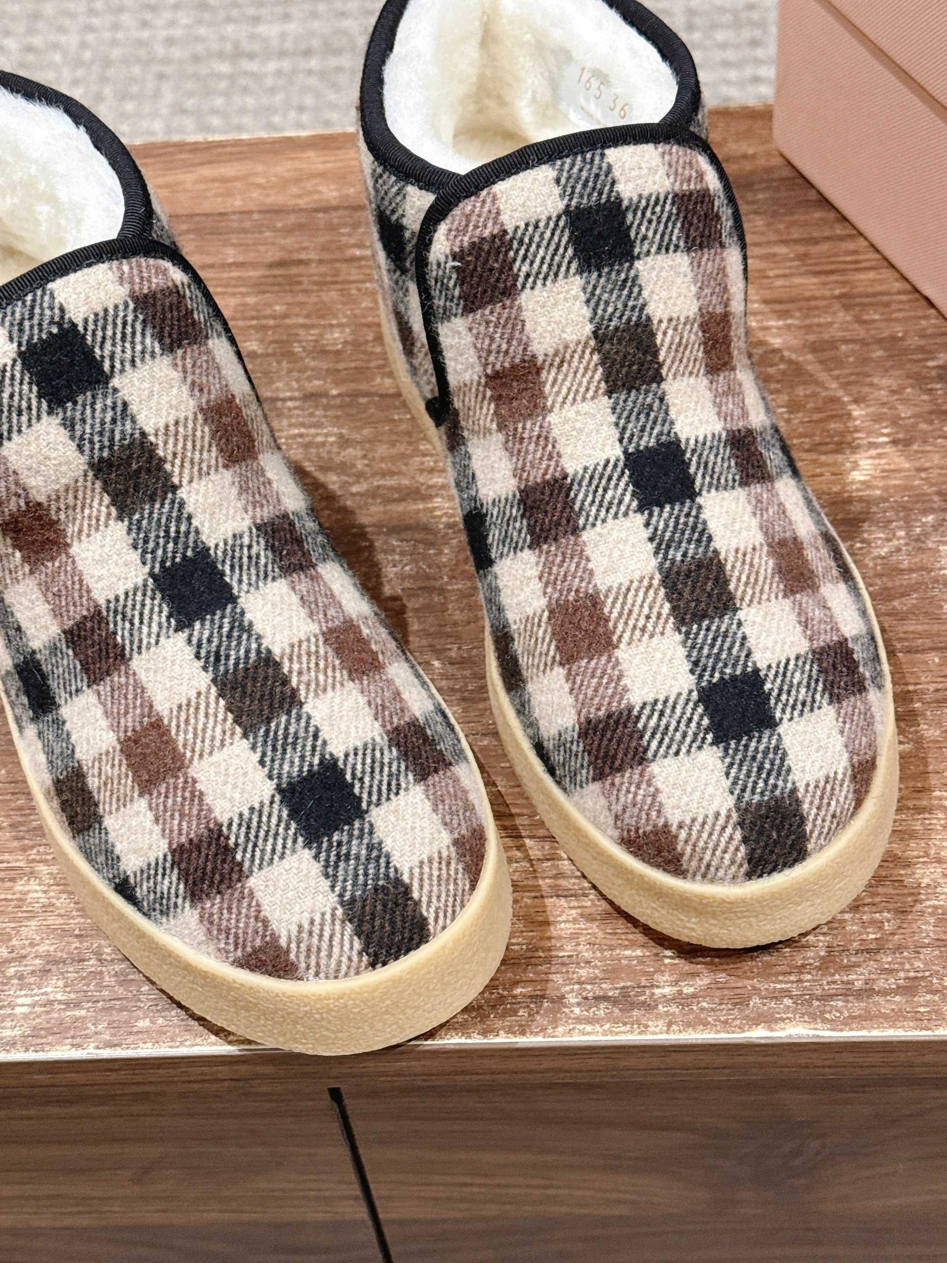 Miumiu 25 Plaid Slip-on Boot Black Brown Mix White Suede Wool 553702