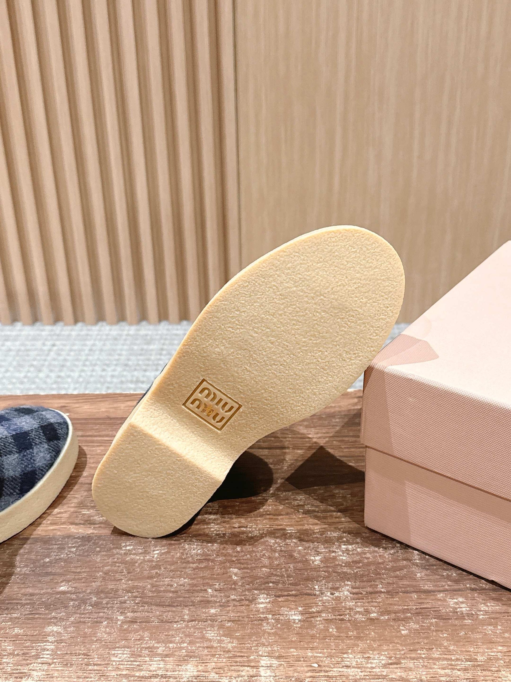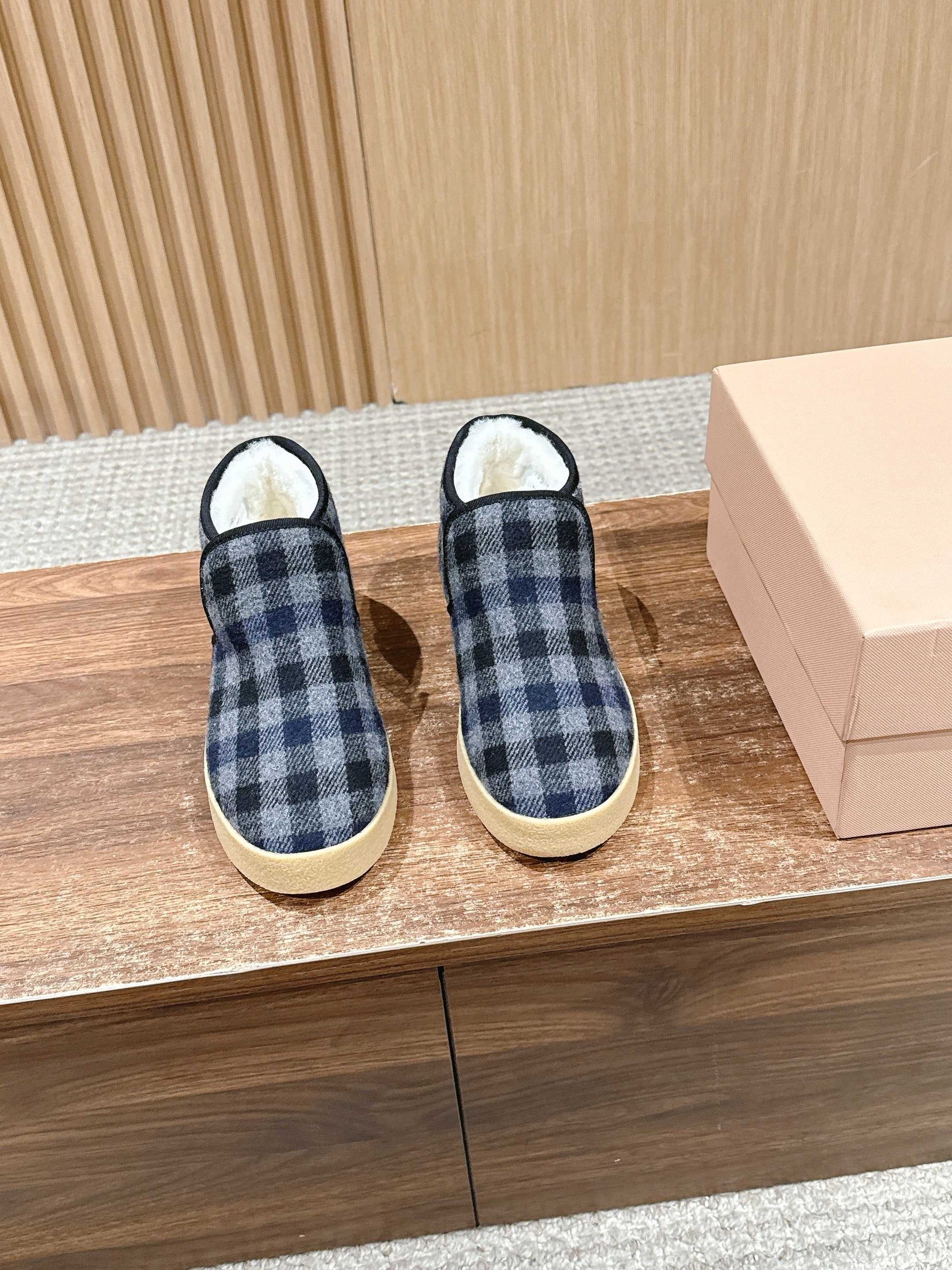 Miumiu 25 Plaid Slip-on Boot Blue Mix White Suede Wool 553703