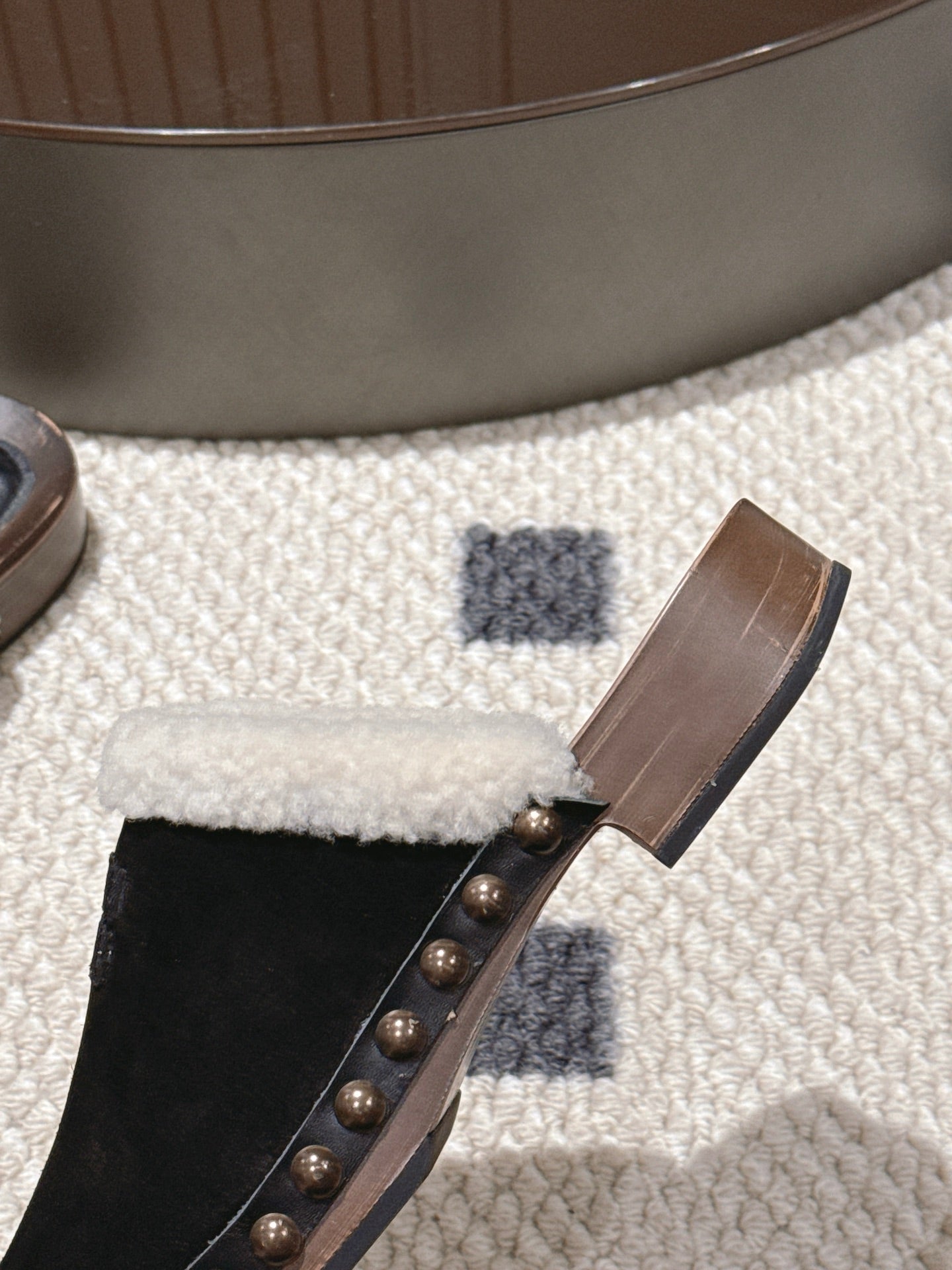 Miumiu 25 Shearling-trimmed Slipper Black Suede Wool 547578