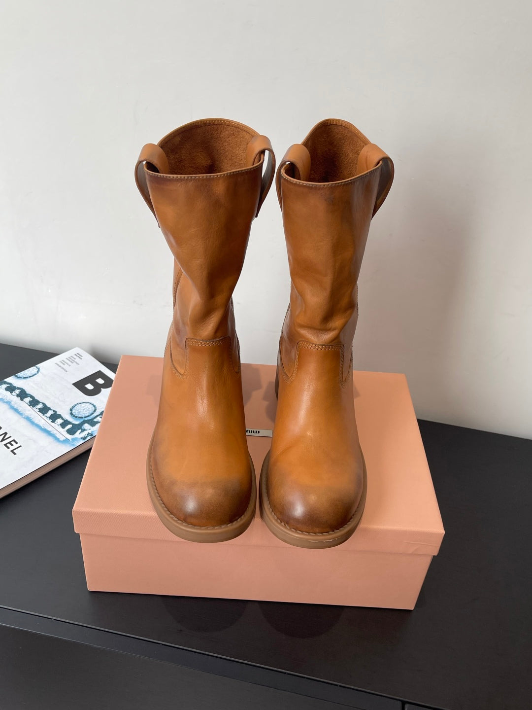 MiuMiu 26 heeled boots caramel brown cowhide 521959