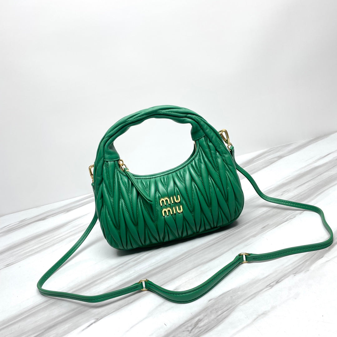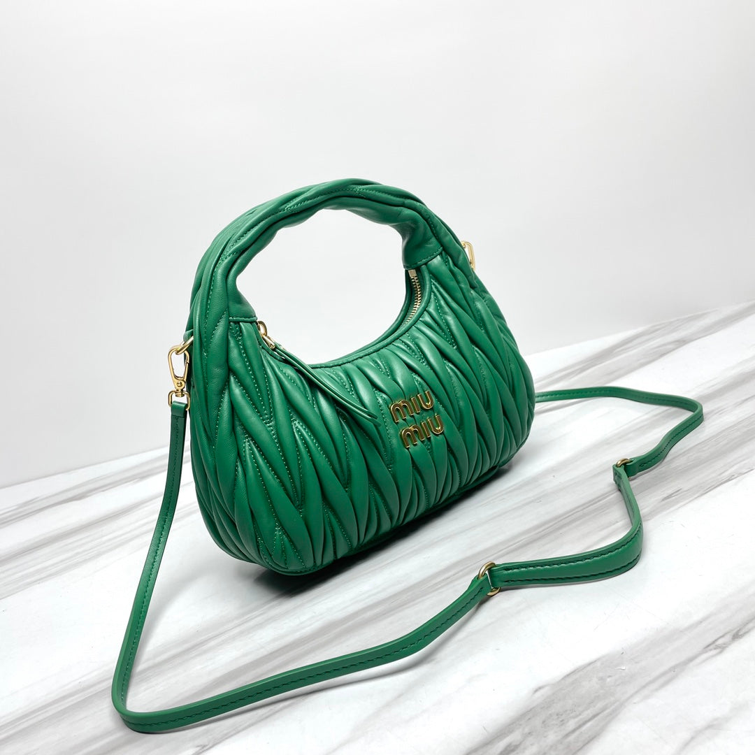 miuwander hobo 23 green matelasse leather