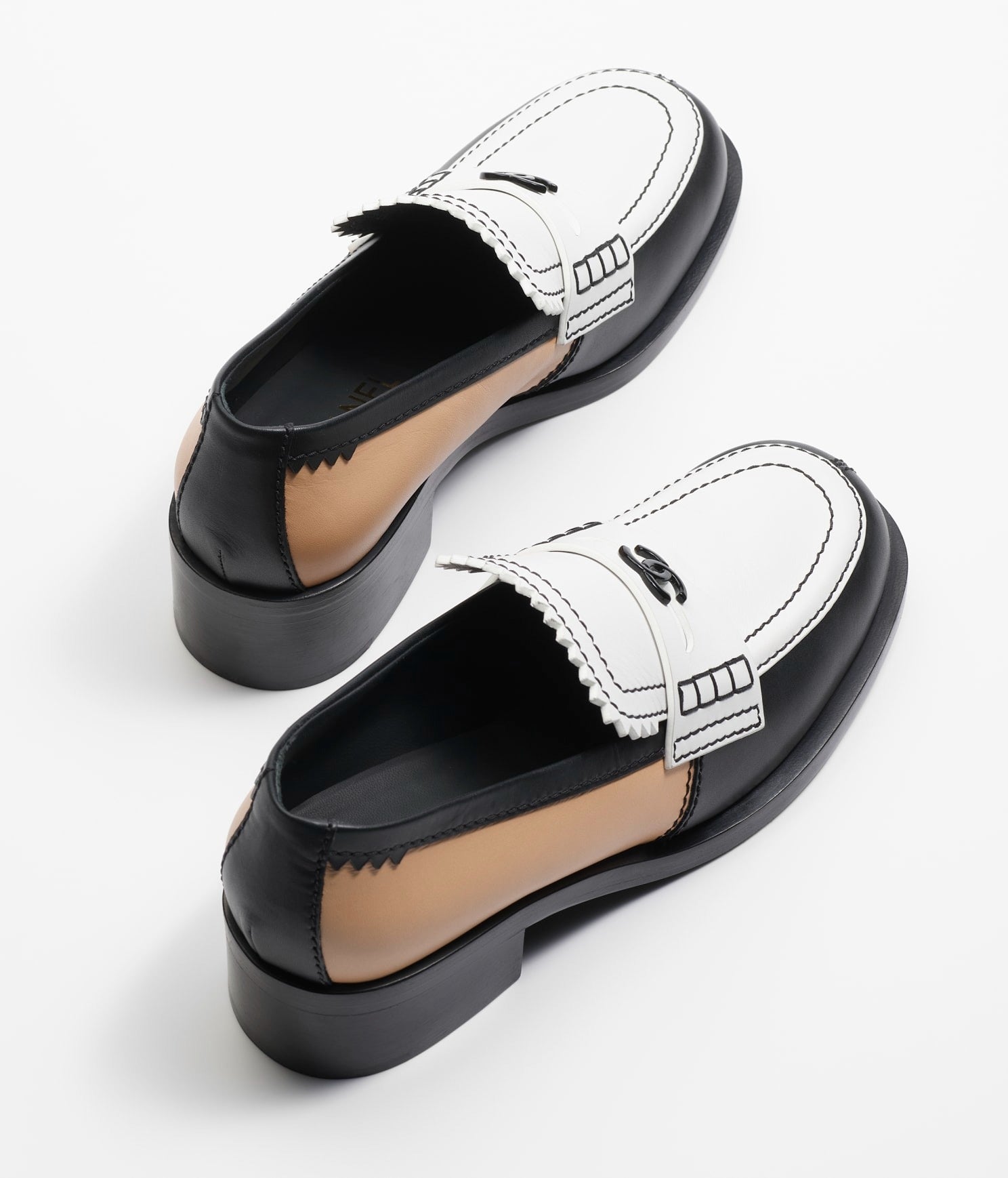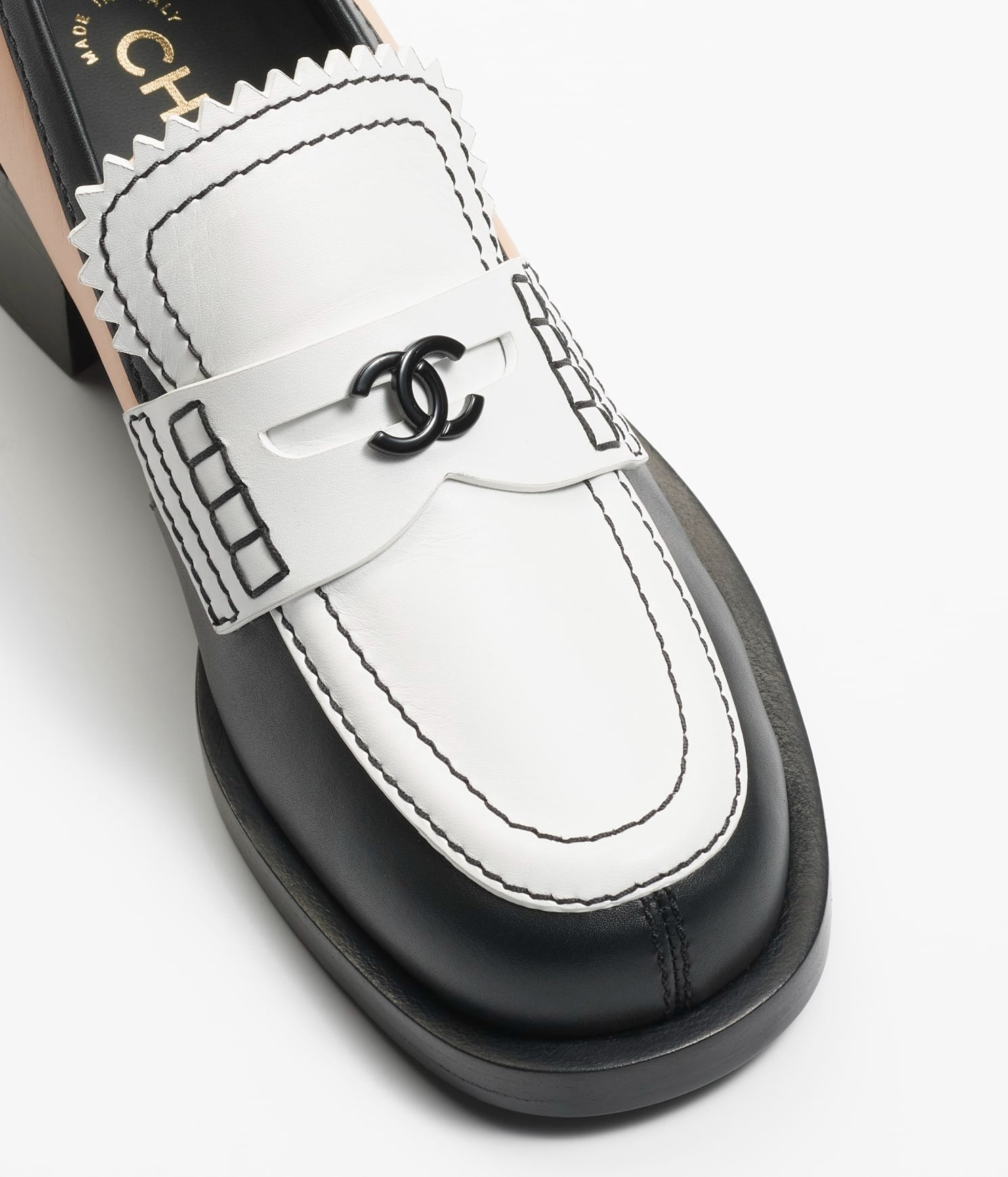 moccasins white black beige calfskin