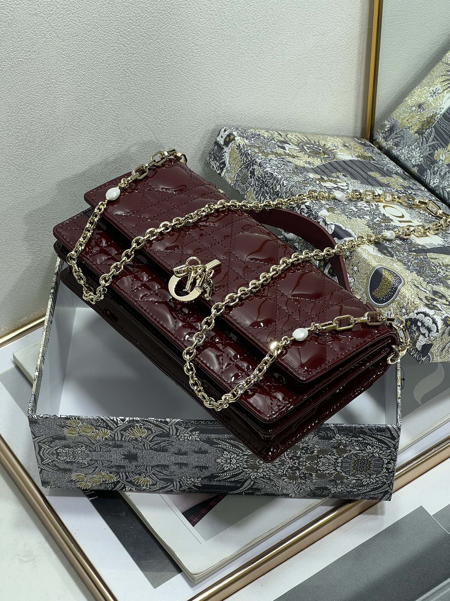 my cd mini 21 burgundy patent lambskin