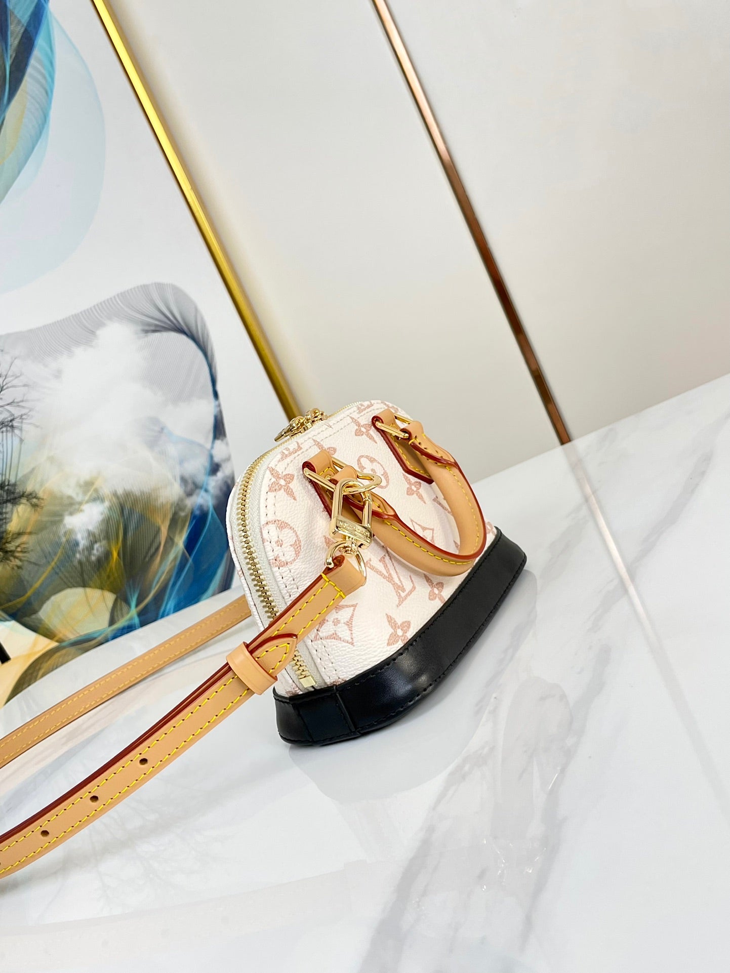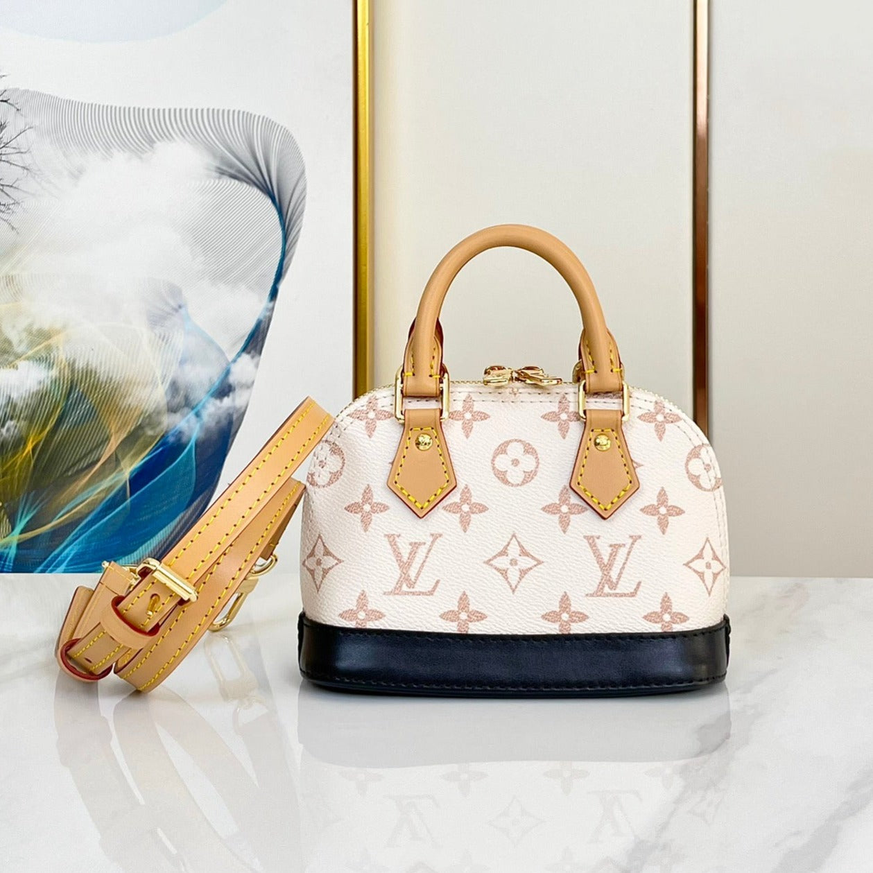 nano alma 18 beige monogram coated canvas brown black calfskin