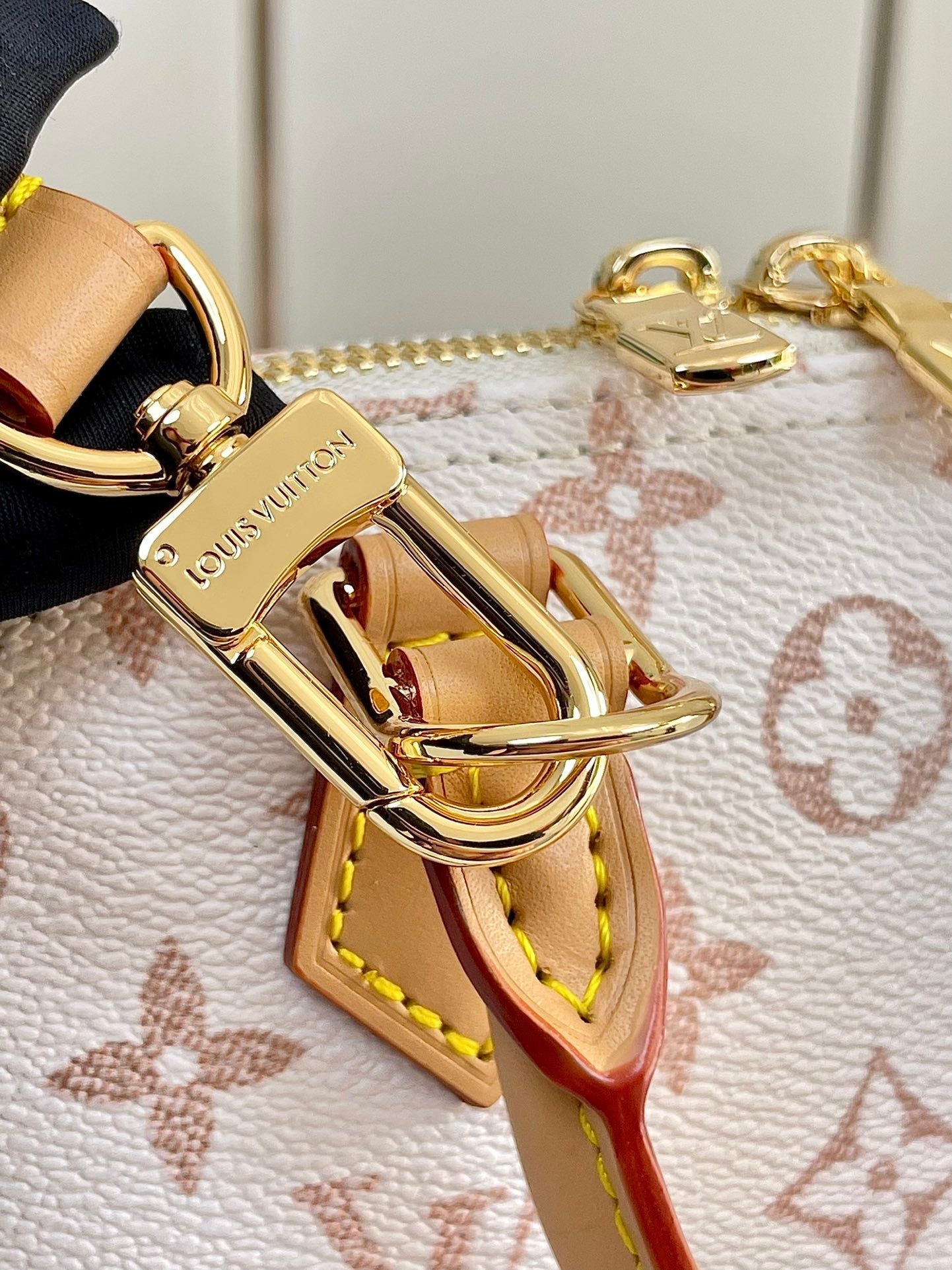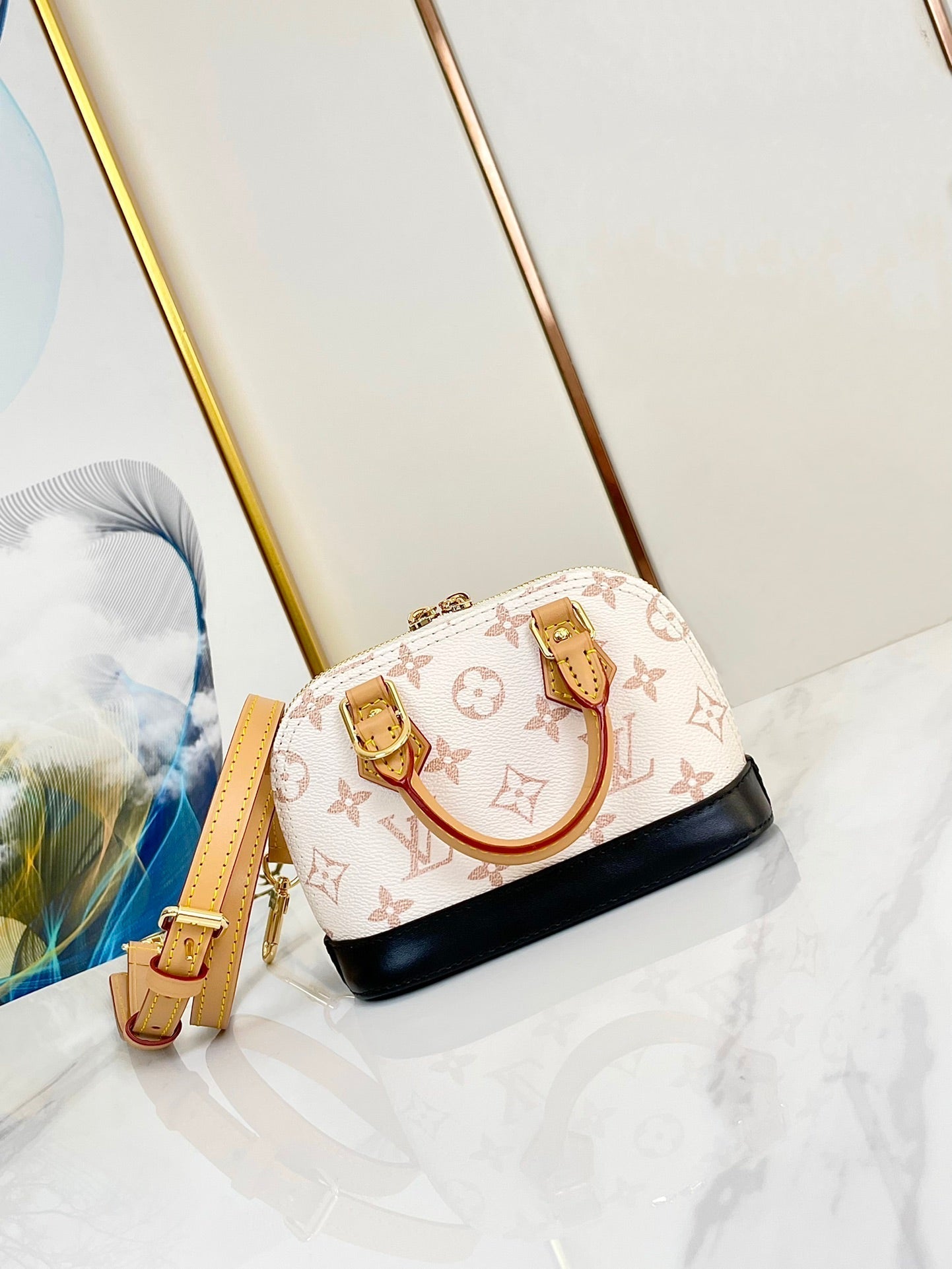 - Gold-color hardware