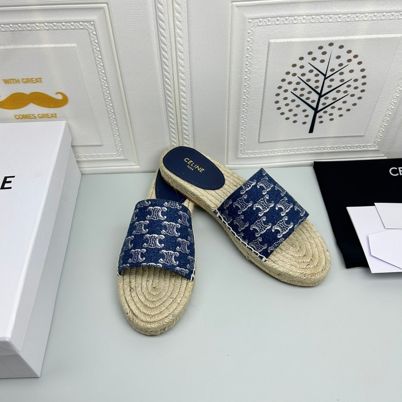NEW FLAT FISHERMAN SLIPPERS NAVY BLUE COTTON CANVAS