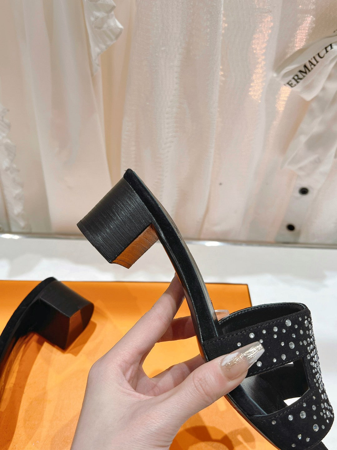 OASIS SANDALS BLACK LAMBSKIN ATTACH CRYSTAL