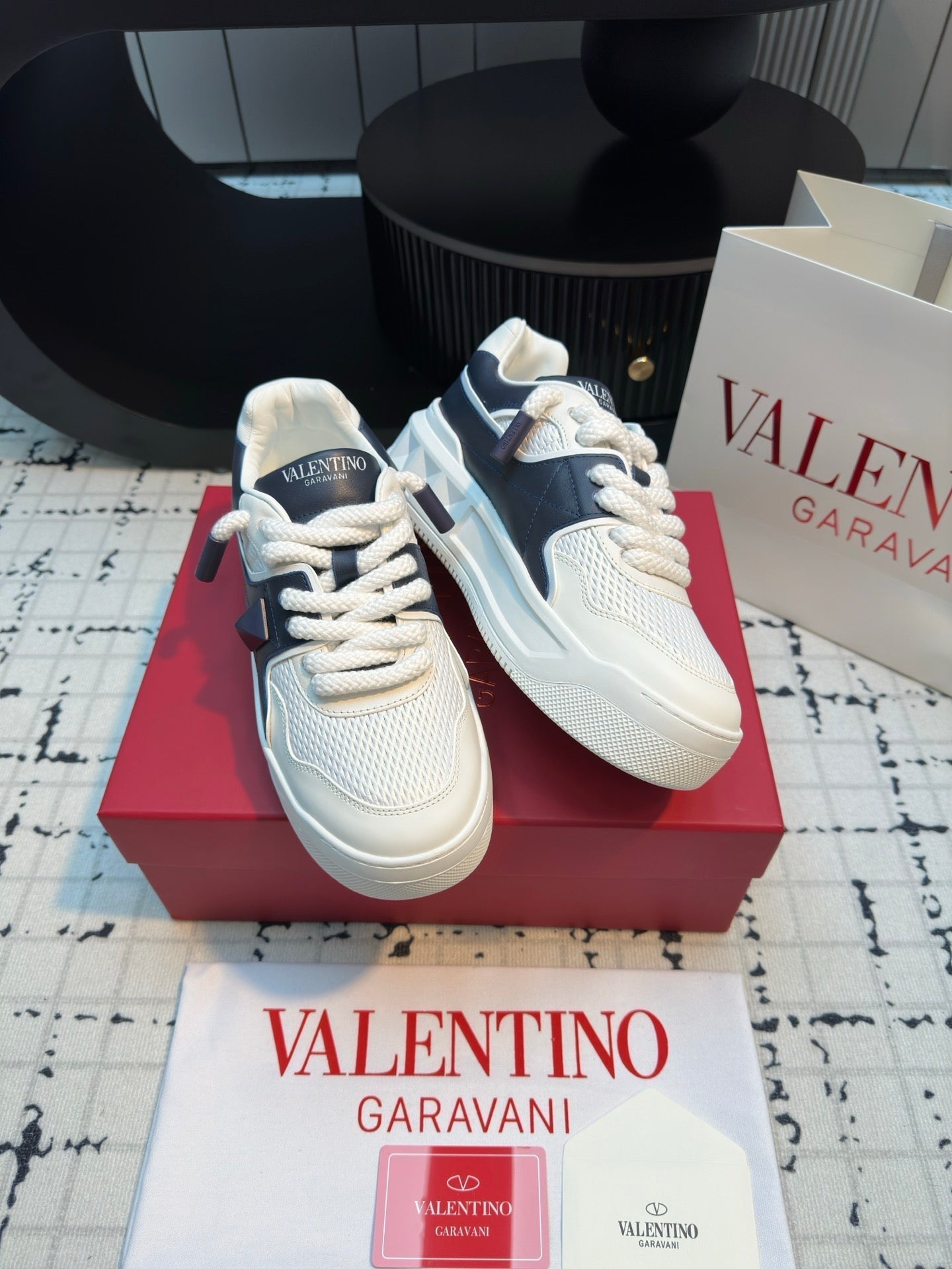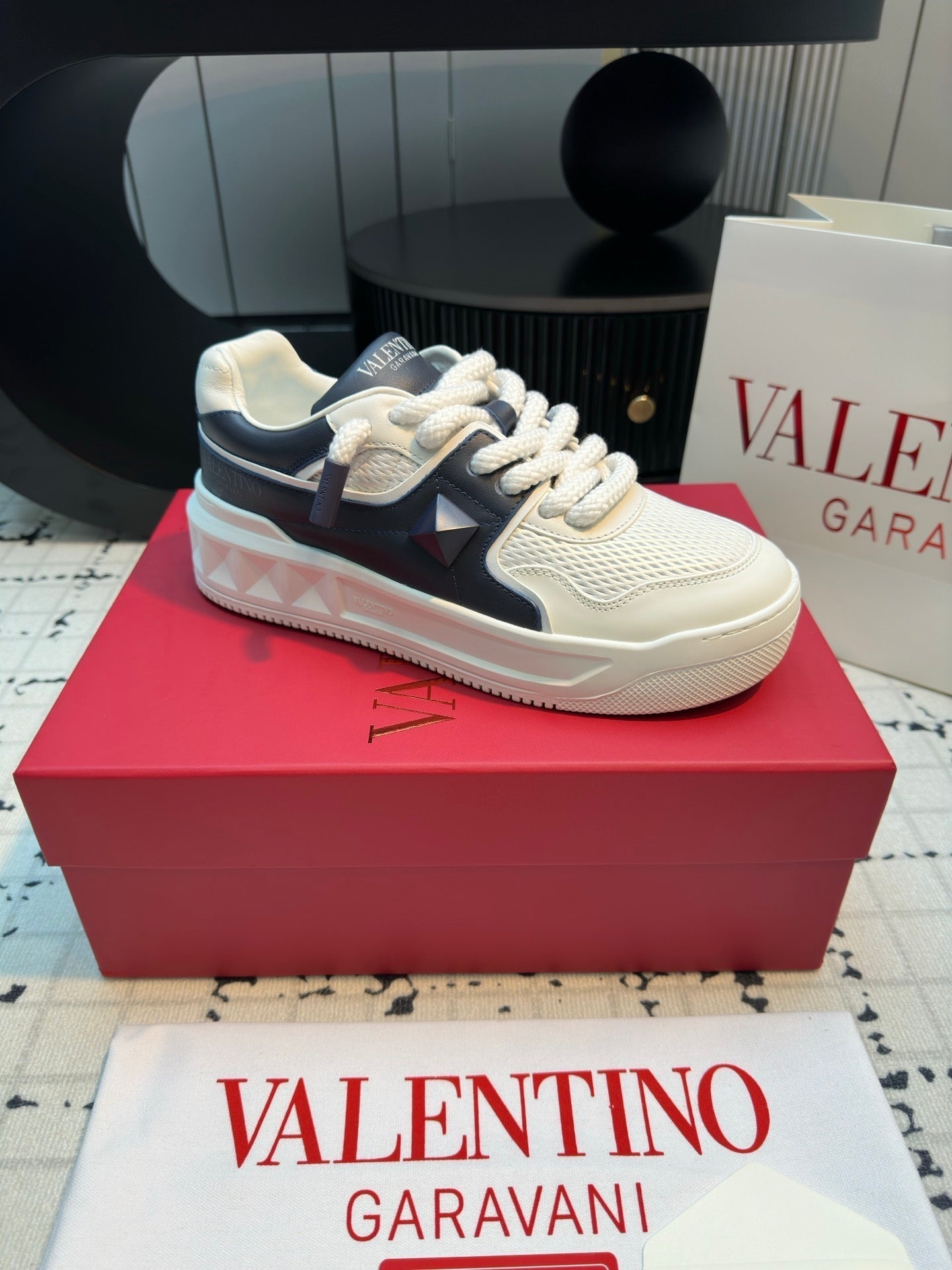 One Stud Xl Trainer In White Mix Black Nappa Leather And Mesh Fabric 824988