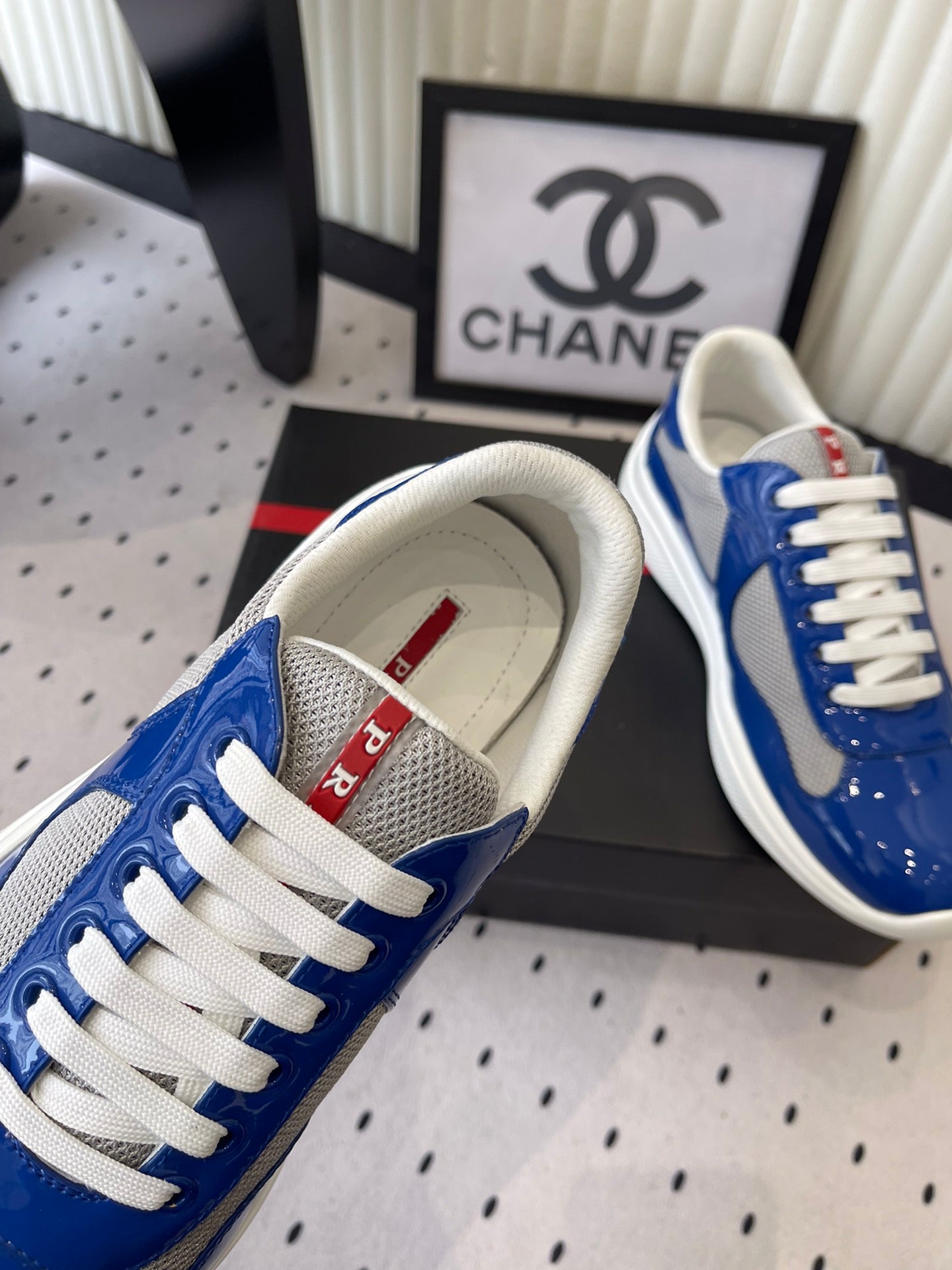 Pra 2025 Sneaker Blue mix Gray Patent Leather Mesh 554575
