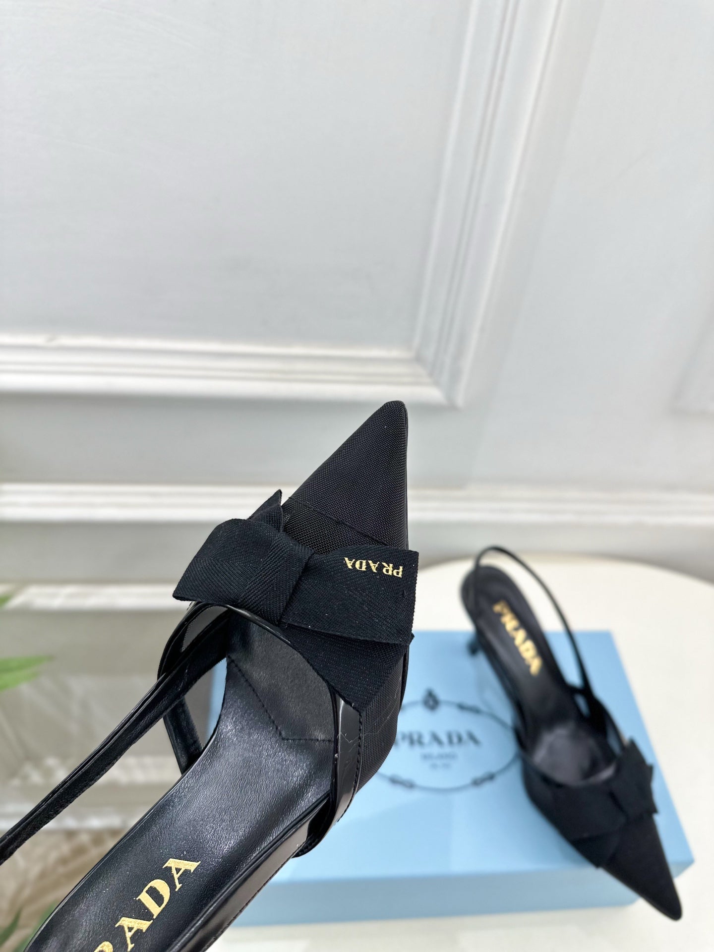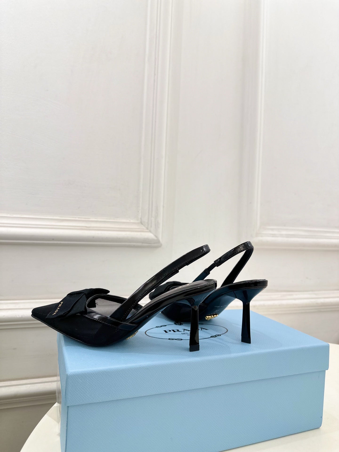 PRA 26S Pointed-Toe Slingback 75 Black Mesh Sheepskin 631961