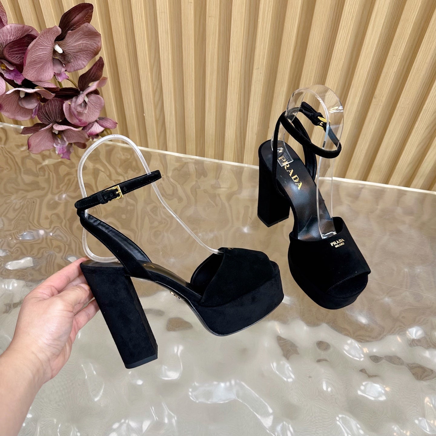 Prada 2025 Platform Sandals Black Velvet Leather 537730