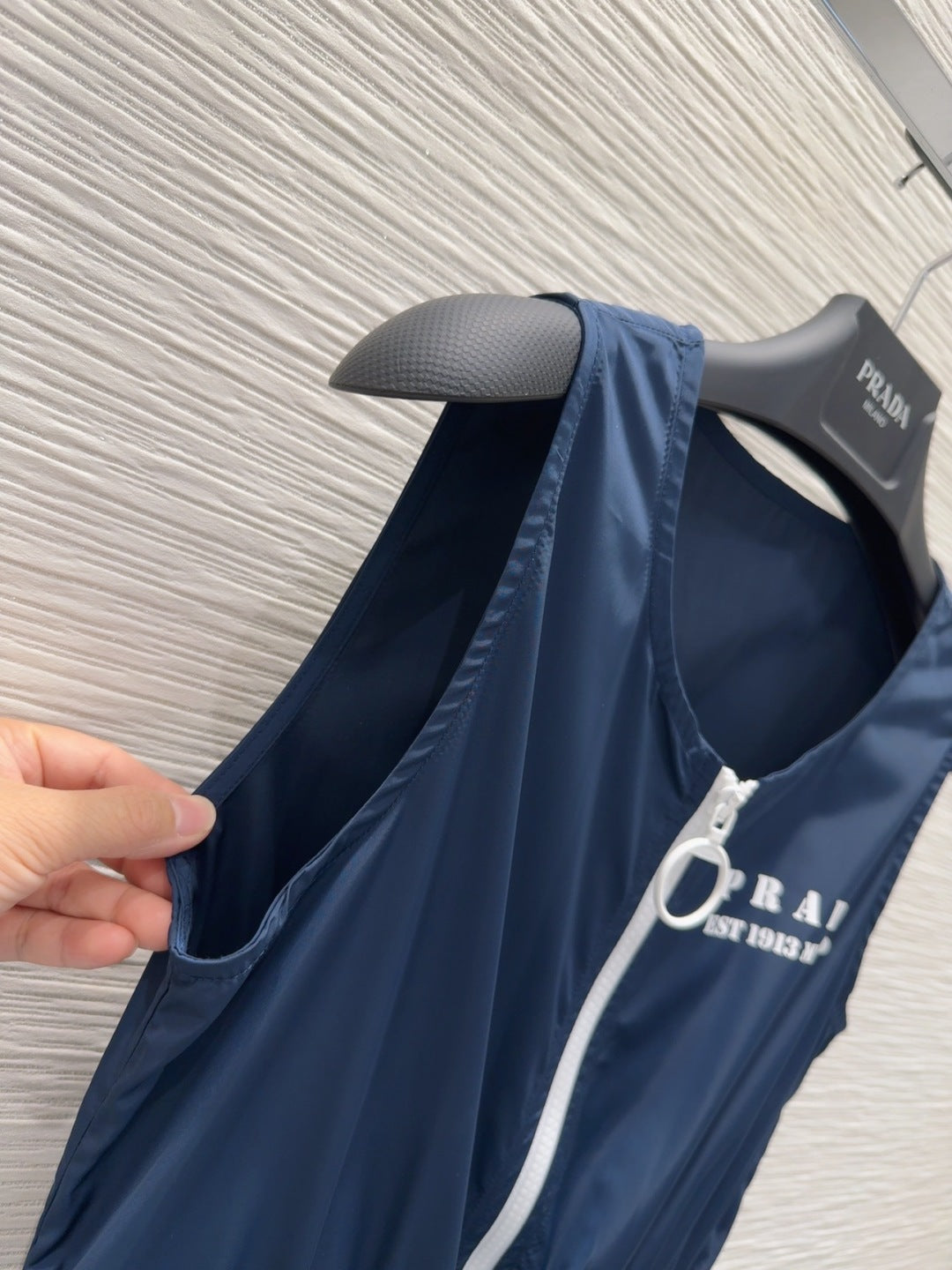 Prada 2025 Sleeveless Dress Navy Blue Polyester