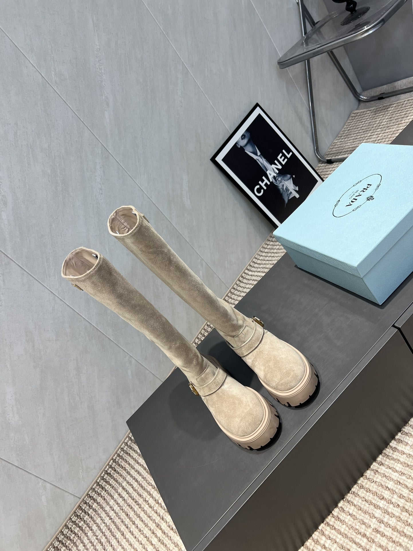 Prada 25 Boot Beige Suede 501670