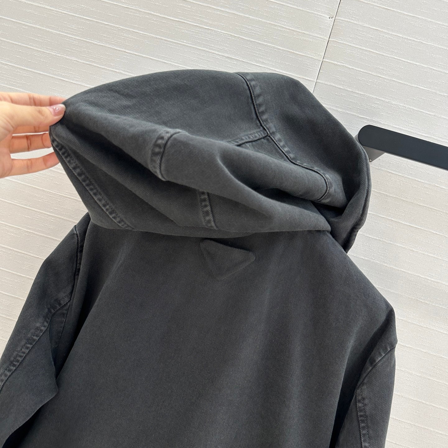 Prada 25 Hooded Short Jacket Smoky Gray Cotton
