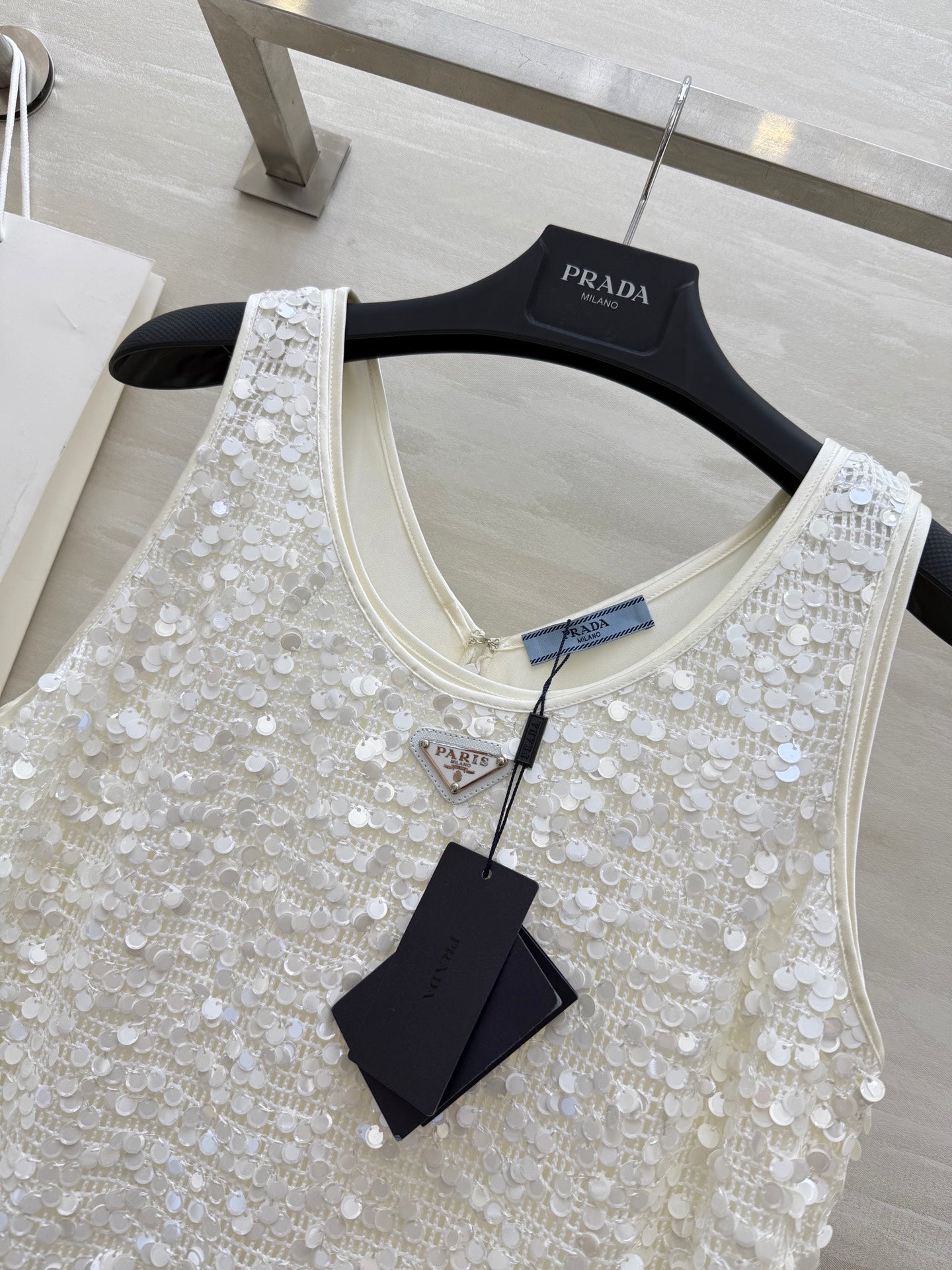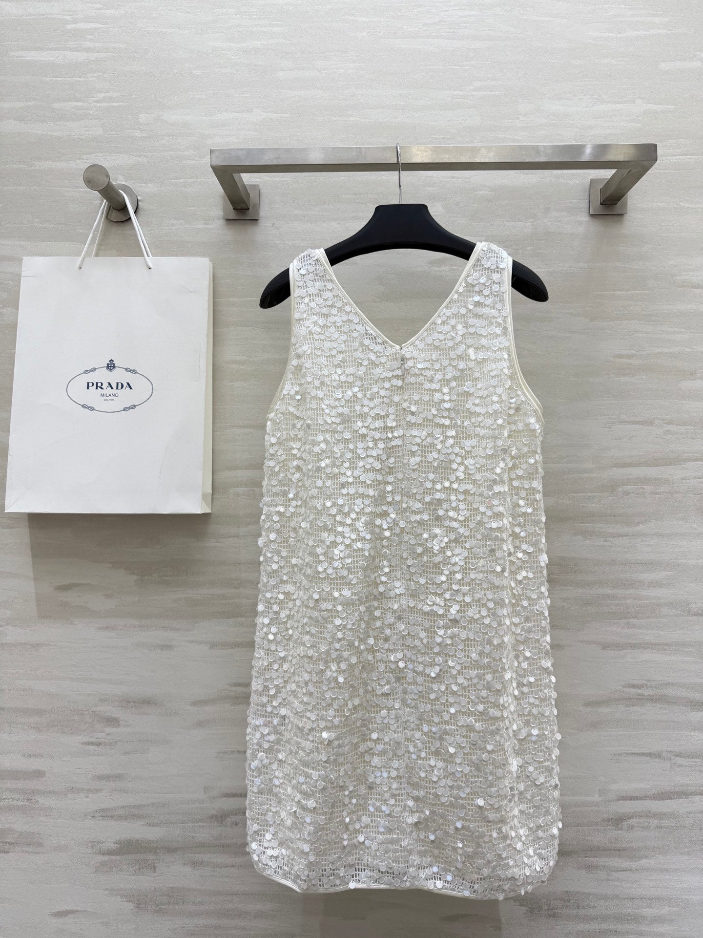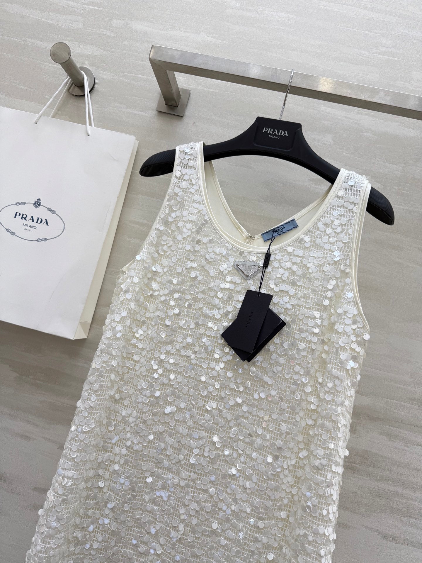 Prada 25 Sequin Vest Dress White Polyester