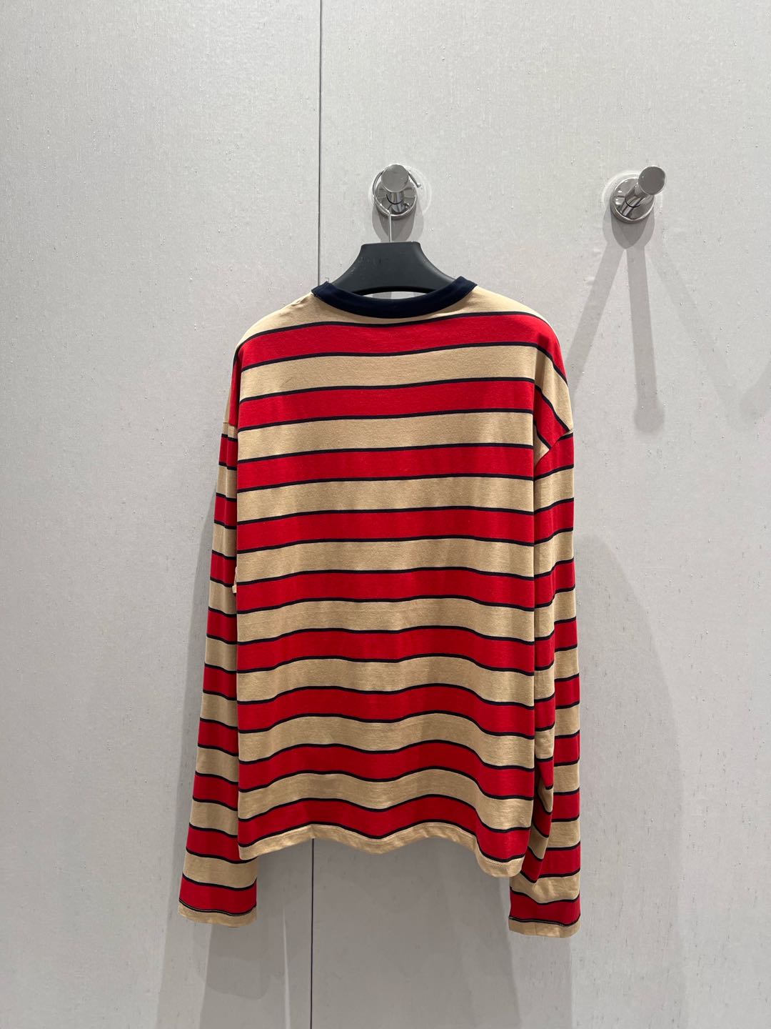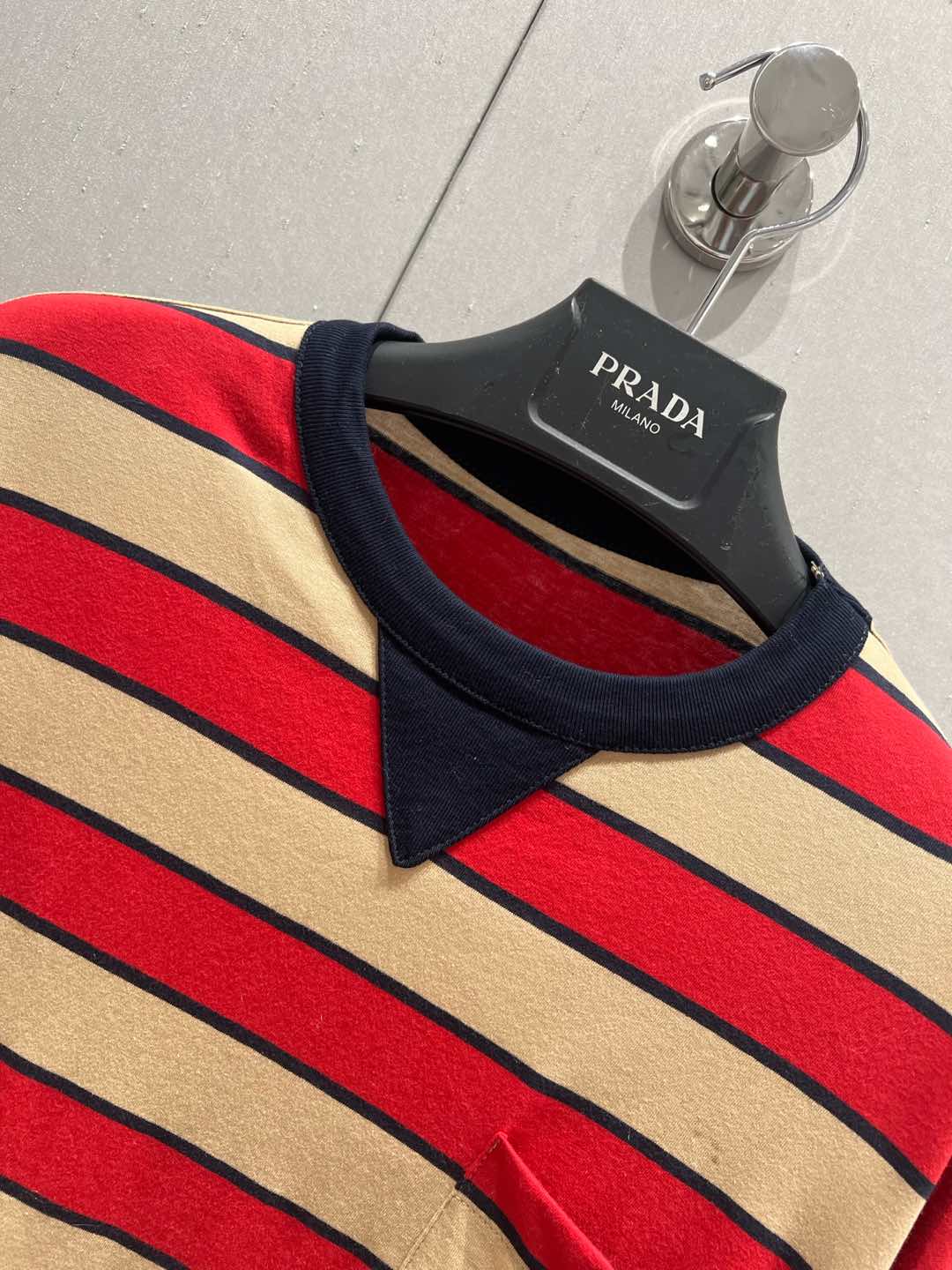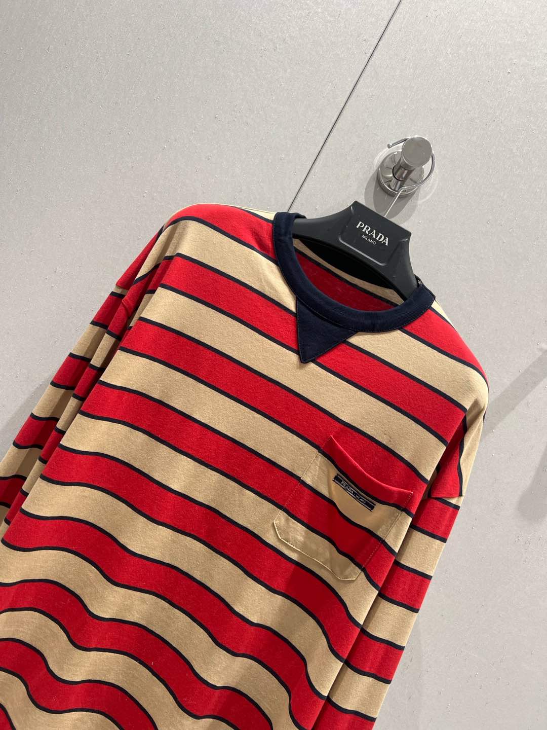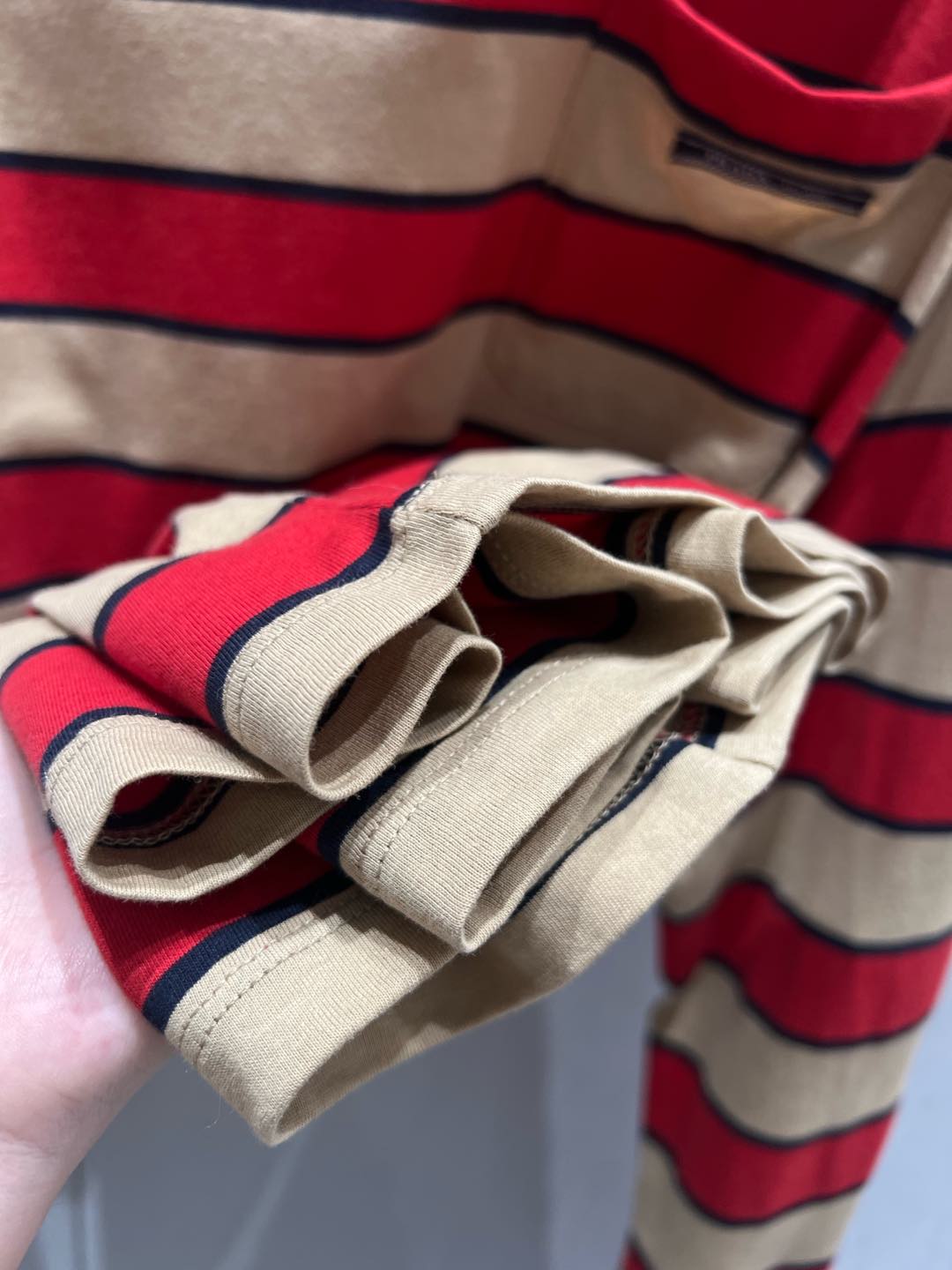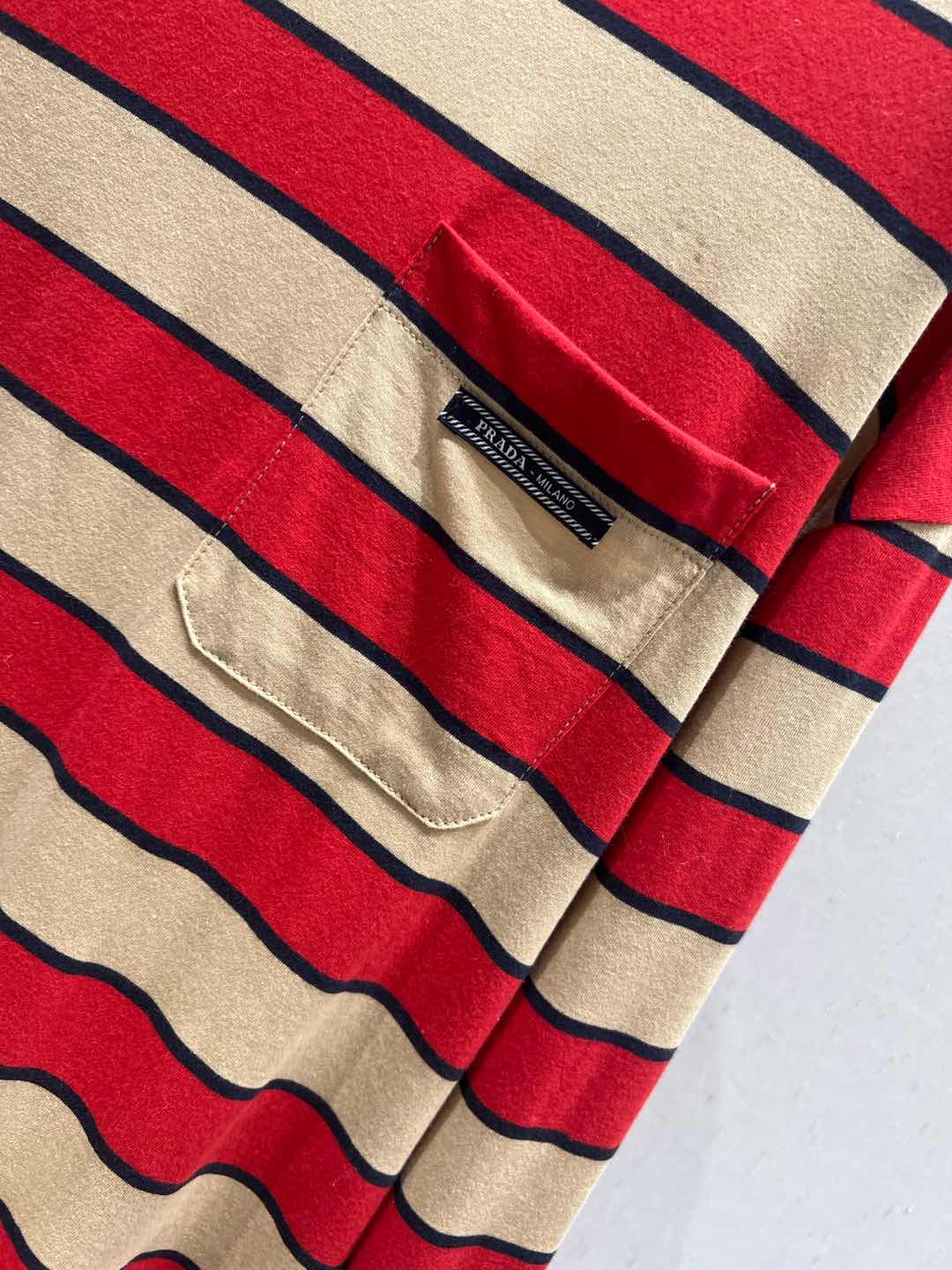 Prada 25 Striped Long-sleeved T-shirt Red mix Beige Cotton 209619