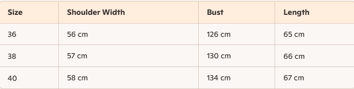 - Size : 36,38,40