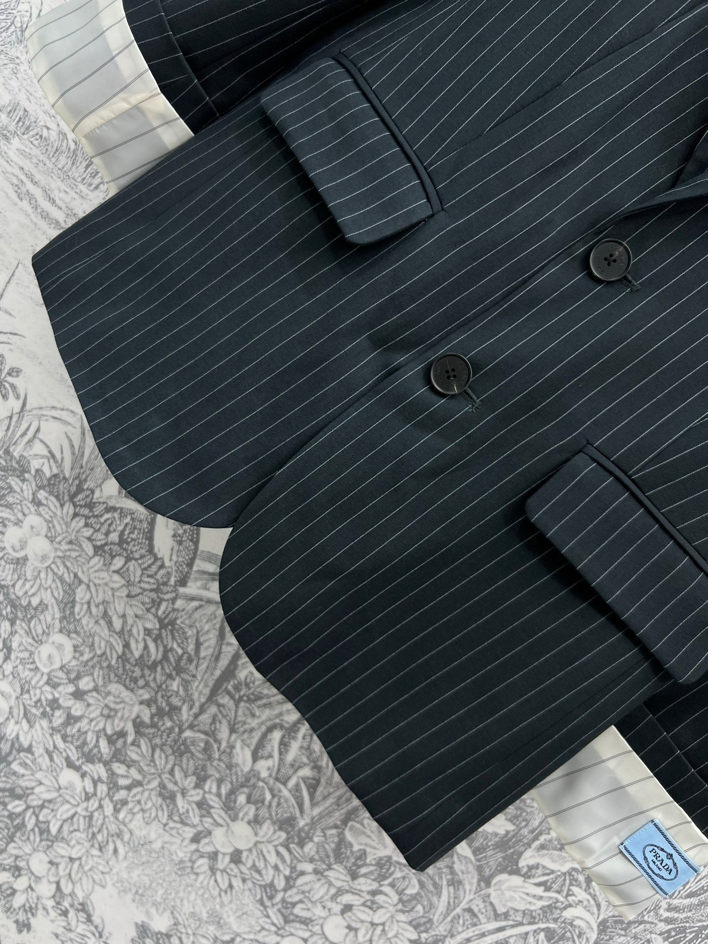 Prada 25 Striped Suit Jacket Black cotton
