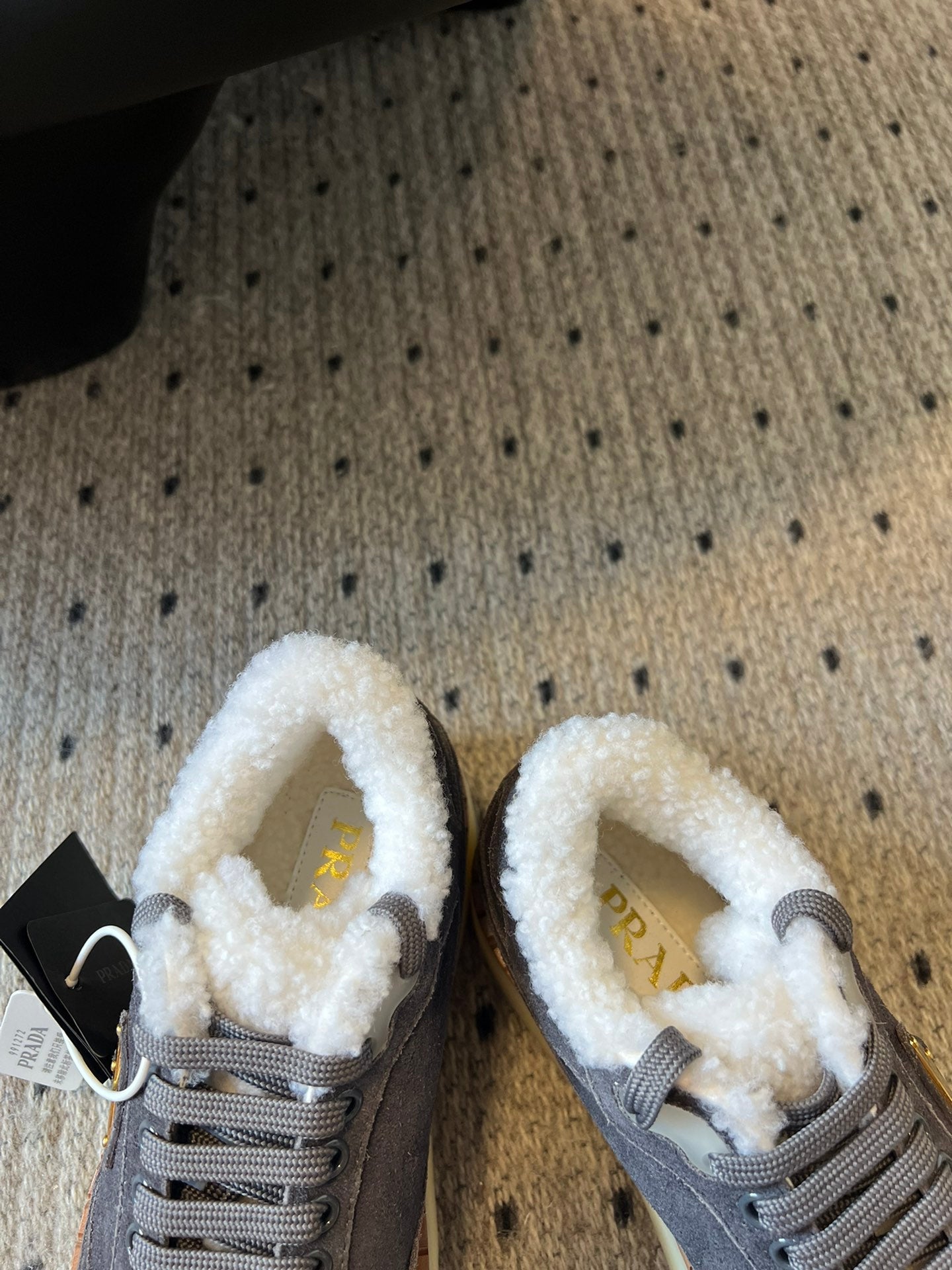 Prada 25s Mid-Top Sneaker Dark Gray Suede And Wool 538434