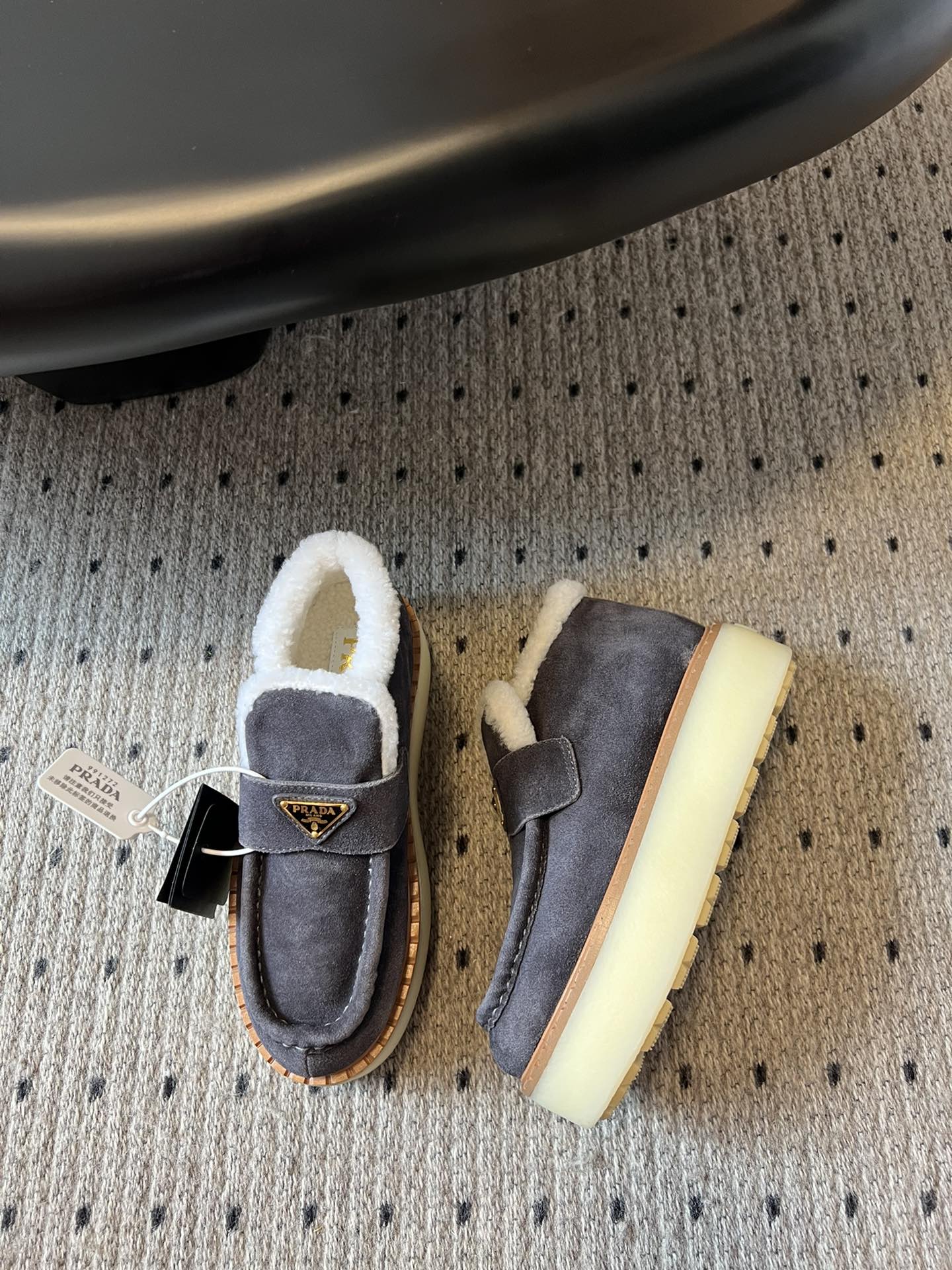Prada 25s platform ankle boots dark gray suede and wool 538441